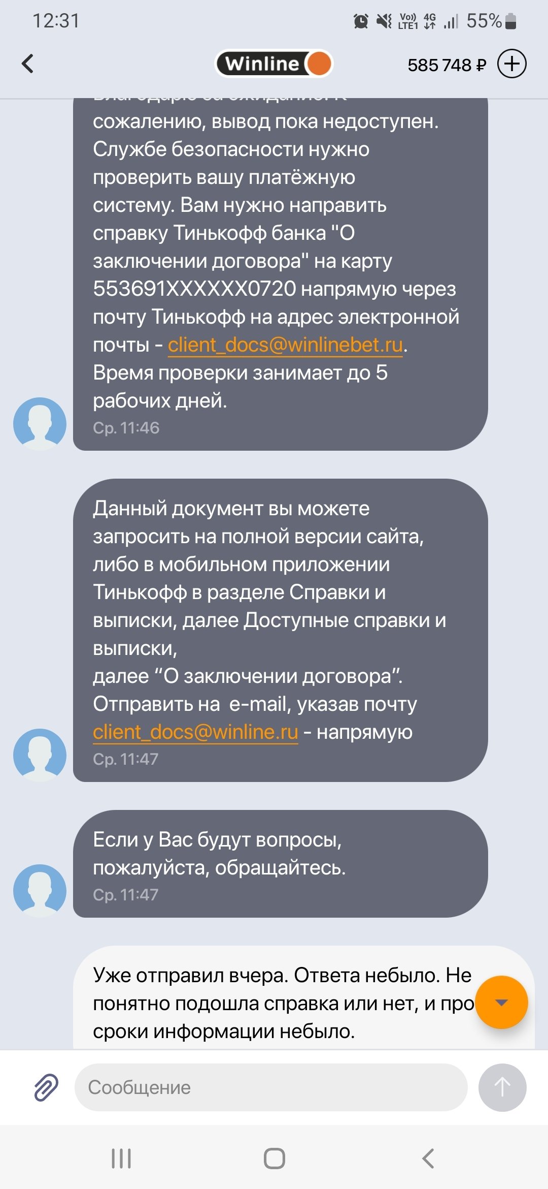 По достижению суммы 588000 на счету потребовали пройти верификацию. Всё было пройдено, документы предоставленны. Учётку разблокировали, порезали лимит и заблокировали вывод средств хотя я запросы на вывод даже не подовал, выводил по 2000-3000 на расходы. В итоге полное игнорирование со стороны БК. Запросили справку от тиньков банка прислать из приложение что физически выполнить нельзя т.к банк справку высылает на мою почту, а напрямую в БК они отправить немогут ( ещё в письме надо указать тел. аккаунта). Горячая линия игнор, почта техподдержки игнор. Впервые такое отношение со стороны БК. Даже левые конторы типа 1Xbet и те реагируют и идут на контакт ,а здесь много пафоса и рекламы со всех утюгов а по факту просто КРЫСЫ.