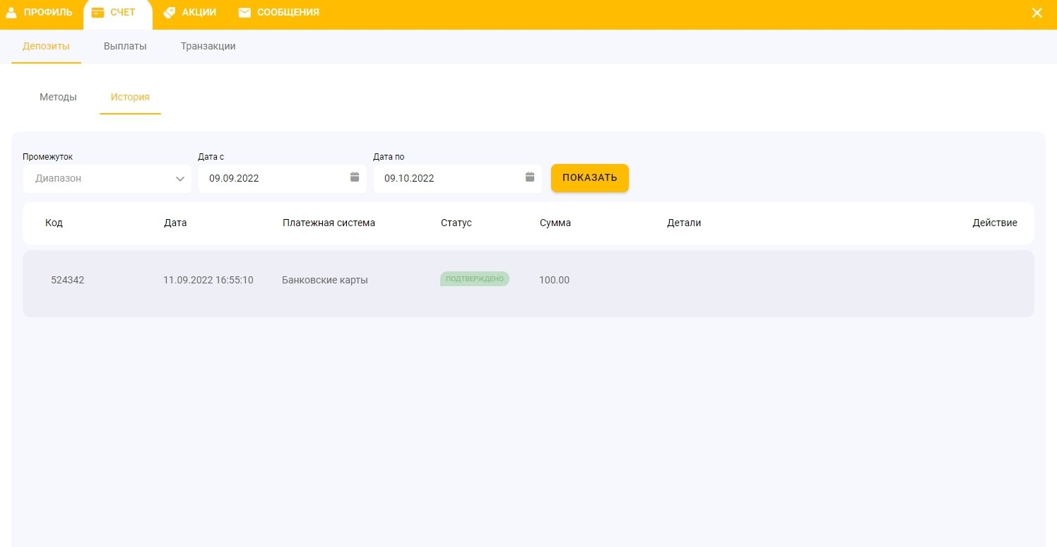 Всё же я нашёл историю, что депозит я делал, в размере 100 рублей