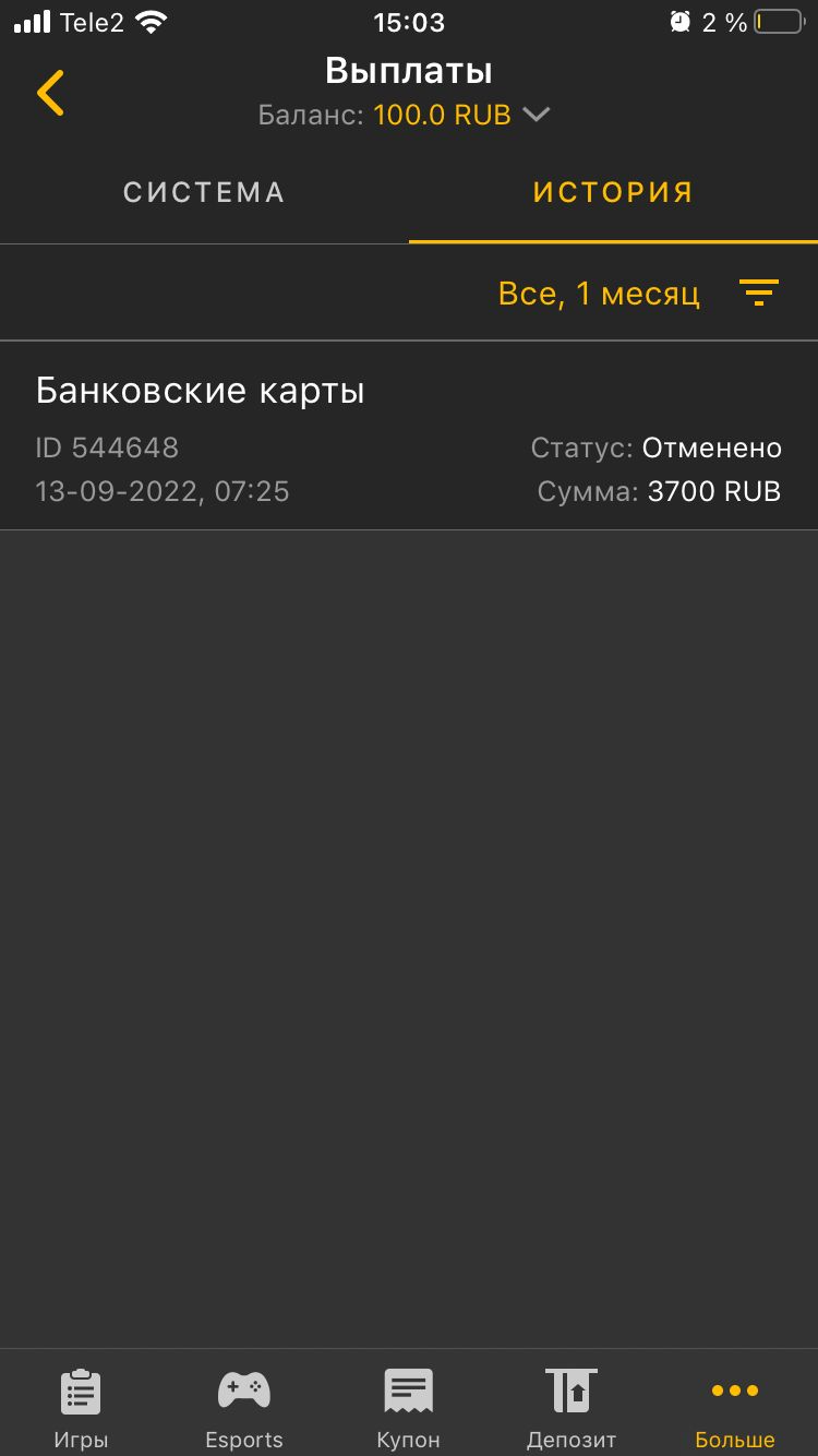 Сперва были проблемы при регистрации и начислении фрибета. После его получения, была сделана успешная ставка с выигрышем 3700 руб. в 07:25 подала заявку на вывод в приложении и в 13:04 по телефону. По истечении 3-х суток ни денег, ни отчета от техподдержки, кроме заученной фразы "ваша заявка обрабатывается, в ближайшее время деньги поступят на счет" они ответить ничего не могут, более того, просто бросают трубку, когда пытаешься добиться от них хоть какого-то вразумительного ответа.