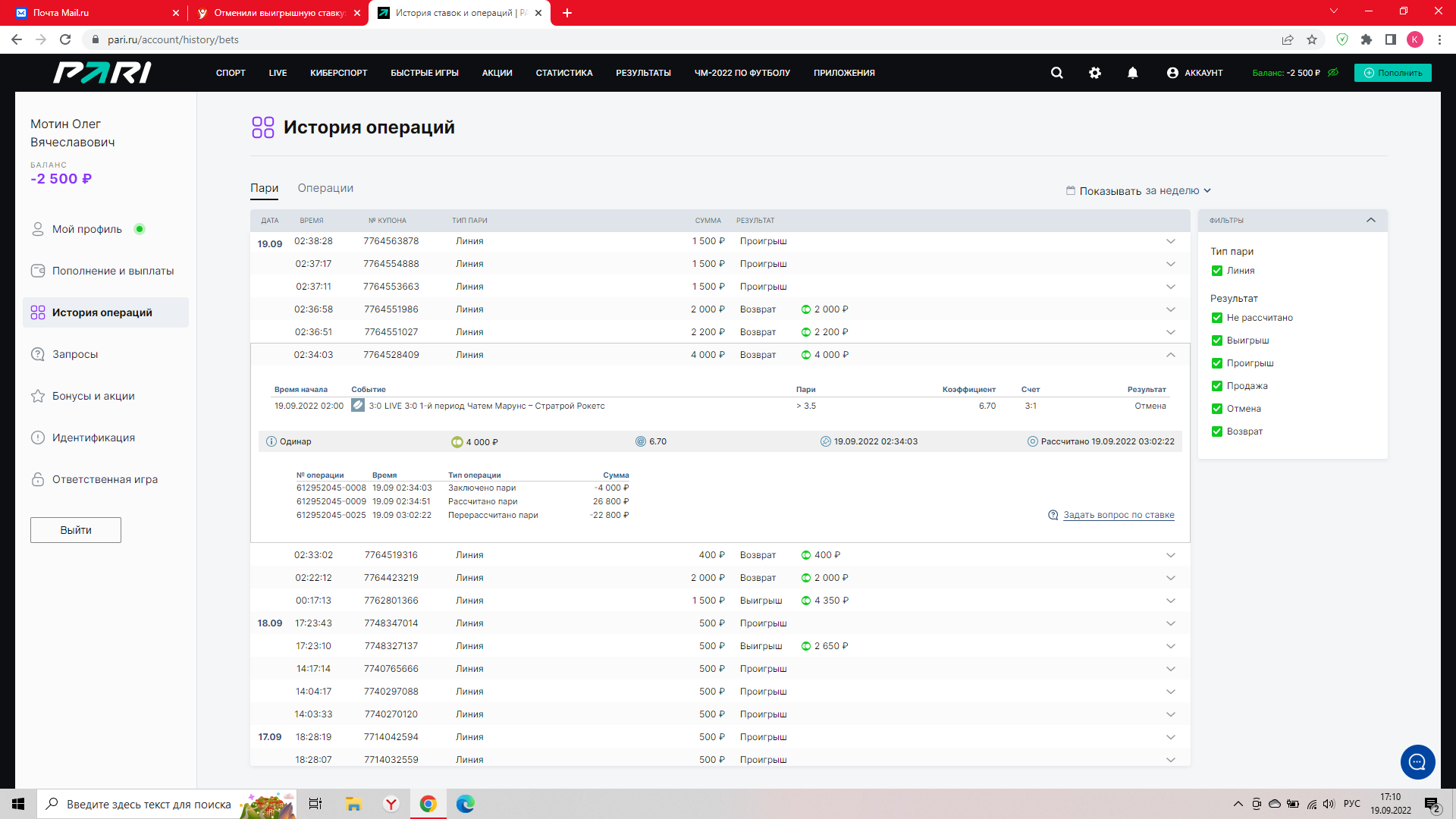 По информации от букмекера, ставка сделана на уже свершившееся событие. Возврат ставки в рамках правил.