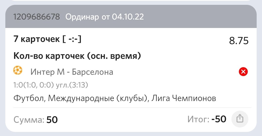 Ставку на ЛЧ вам пересчитали. А по Аргентине контора утверждает, что одна карточка была вне поля. Будем разбираться.