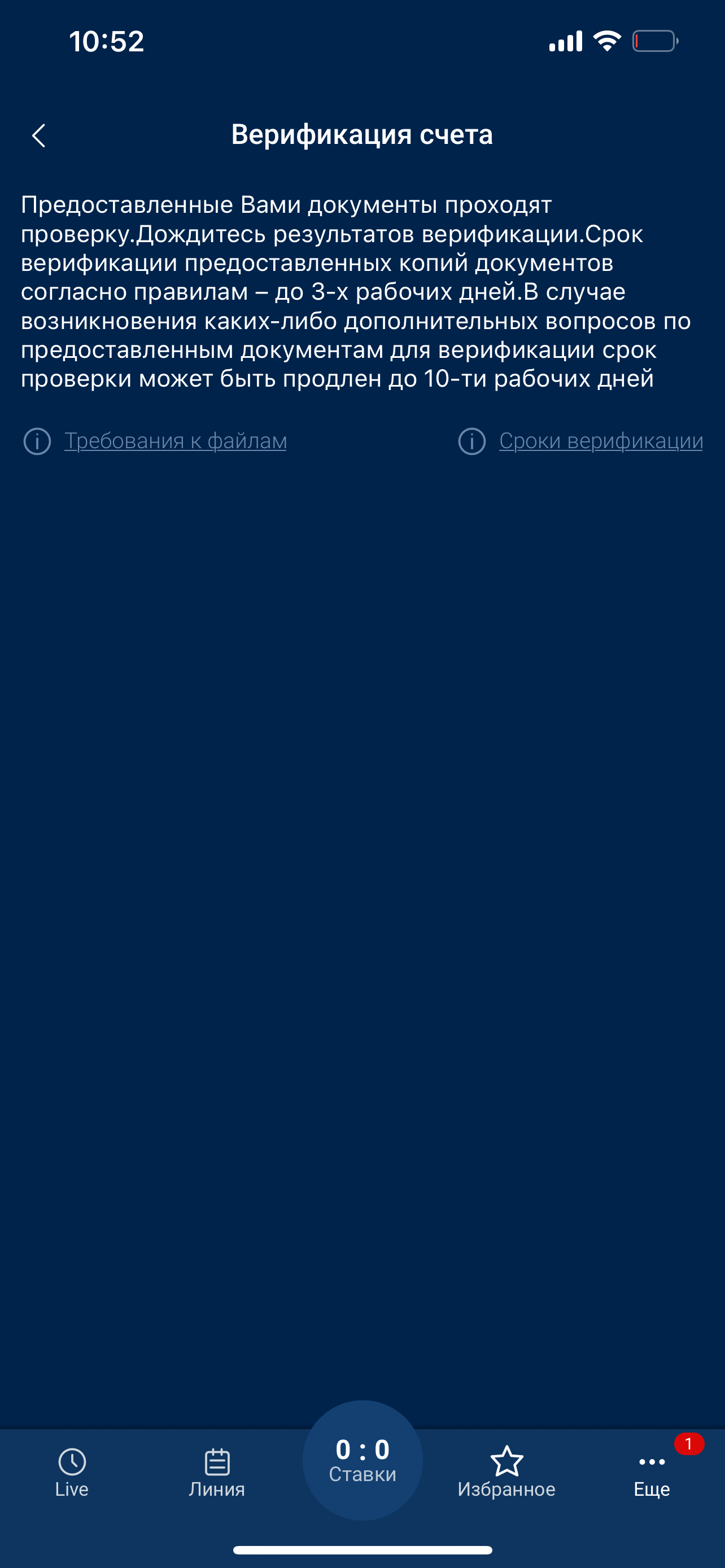 Здравствуйте!Мой номер счета 1949273. Зовут меня Михаил. Зарегистрировался в БК Зенит совсем недавно, а именно 4 октября, и уже столкнулся с большими проблемами. Внес депозит, начал ставить, выиграл , ну конечно же , по всем законам подлости , если тебе повезло в ставках, умудрись еще вывести эту небывалую удачу. На другой исход я и не рассчитывал, но все же за себя я знаю точно, что я полностью чист, ни с каких не личных карт не пополнял, никому не давал свой аккаунт , и ставил вот просто на удачу, игрался , мог и проиграть все с таким же успехом. Но вот выиграл и читая все жалобы, понимаю , что таких счастливчиков здесь очень много и с большинством Бк Зенит поступает очень непорядочно. Очень бы не хотелось , чтоб они и меня также обчистили, поэтому и пишу заранее. Очень переживаю за свои денежные средства, и искренне верю, что сотрудники легалбет действительно могут повлиять на проведение ДОБРОСОВЕСТНОЙ верификации с последующим выводом средств без всяких заморозок на 60 дней и аннулирований балансов, про которые пишет каждый второй пользователь в статье жалоб на Зенит . Как обстоит ситуация на данный момент.Я отправил 4 фото (скрин прикрепил) сСказали ждать до 3 рабочих дней после чего деньги будут выведены, также в чате и по телефону я очень долго общался по вопросу банальной привязки карты (говорили карта может привязываться до 60 дней) и только своей дотошностью наверное и попаданием в момент на хорошего оператора Марию смог решить этот вопрос , что уже заставило насторожиться. В итоге у меня получилось создать вывод даже не на карту , а на кошелёк цупис, но его отклонили и вот запросили фотографии. Очень прошу команду легалбет проконтролировать протекание данной верификации, чтобы я благополучно смог вывести средства , потому что начитавшись , что может демонстрировать эта бк, мне правда становится не по себе уже на этапе начала этой верификации. Со своей стороны, все, что нужно, любые документы и доказательства готов предоставить в кратчайшие сроки , чтобы максимально быстро и без проблем решить этот вопрос. И еще раз повторюсь я не нарушил ни одного правила этой букмекерской конторы, я изучил их правила , они меня ссылают сейчас на пункт правил 2.8.4 , где говорится, что нельзя пополнять с чужих карт, но карта моя уже 4 года, и я им ее отправил , как по мне это максимально нелепо , как будто они из пальца высасывают, к чему бы прикопаться. Очень надеюсь на вашу отзывчивость и помощь , с уважением, Михаил .