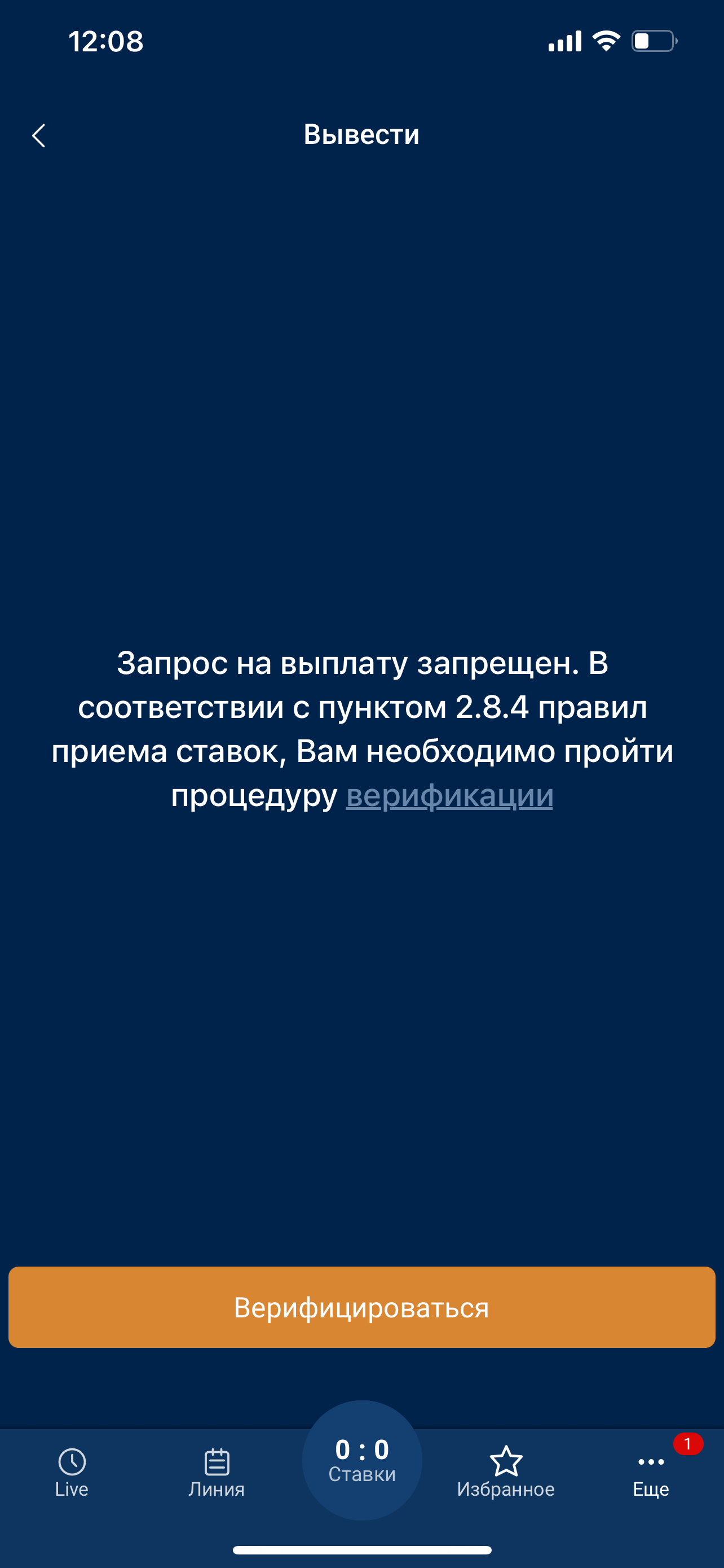 Блокировка вывода средств - верификация
