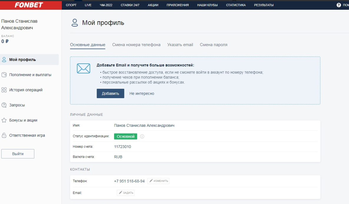 Всех приветствую, хочу сразу пожелать всем хорошего дня, вот у меня такая проблема возникла друзья, увидел на данном прекрасном сайте букмекера фонбет, заманила их прикольная акция, решил, значит я попробовать пополнил на рублей, и по итогу ничего не получил, вижу, что данная проблема не только у меня, не сразу решался рассказать про мою проблему, думал, что не помогут, но вижу, что бывают и положительные случаи, поэтому надежда есть, теперь обращения к администрации легалбет, друзья буду вам очень благодарен если вы окажете мне содействие, давно за вами слежу, хоть и зарегистрировался только сегодня, дабы рассказать о своей проблеме, заранее вам большое спасибо