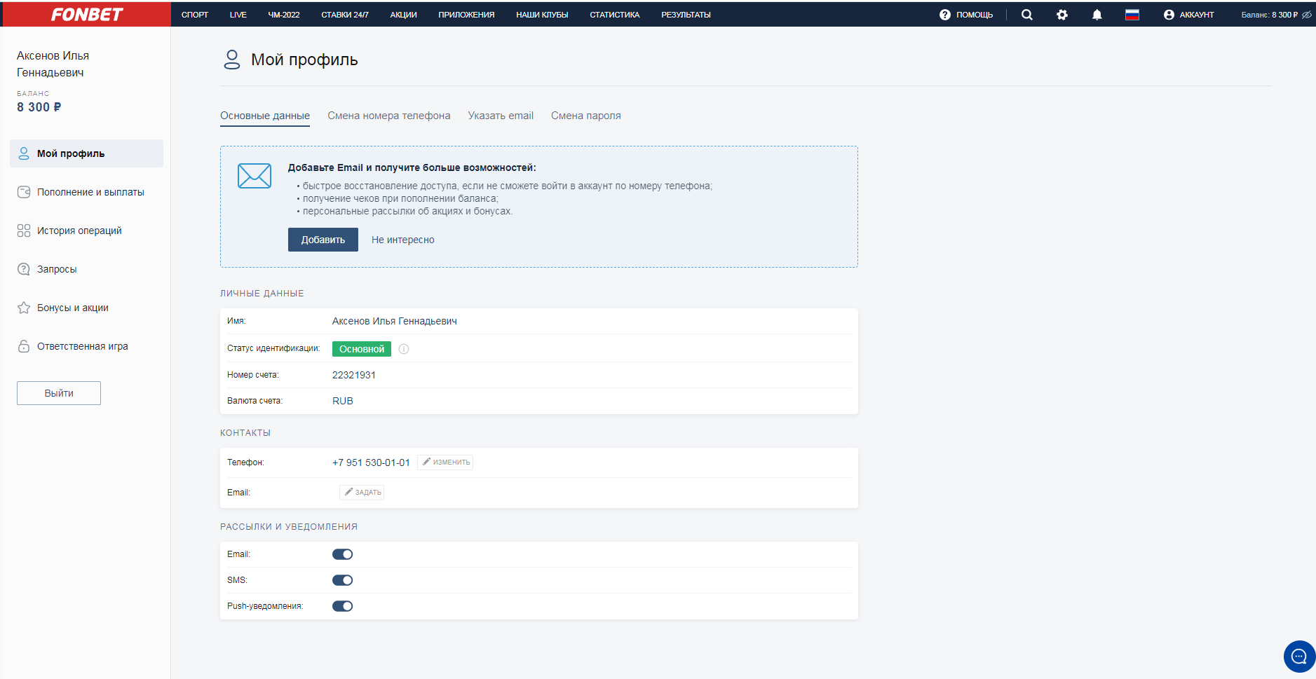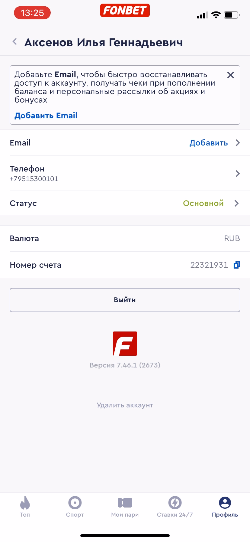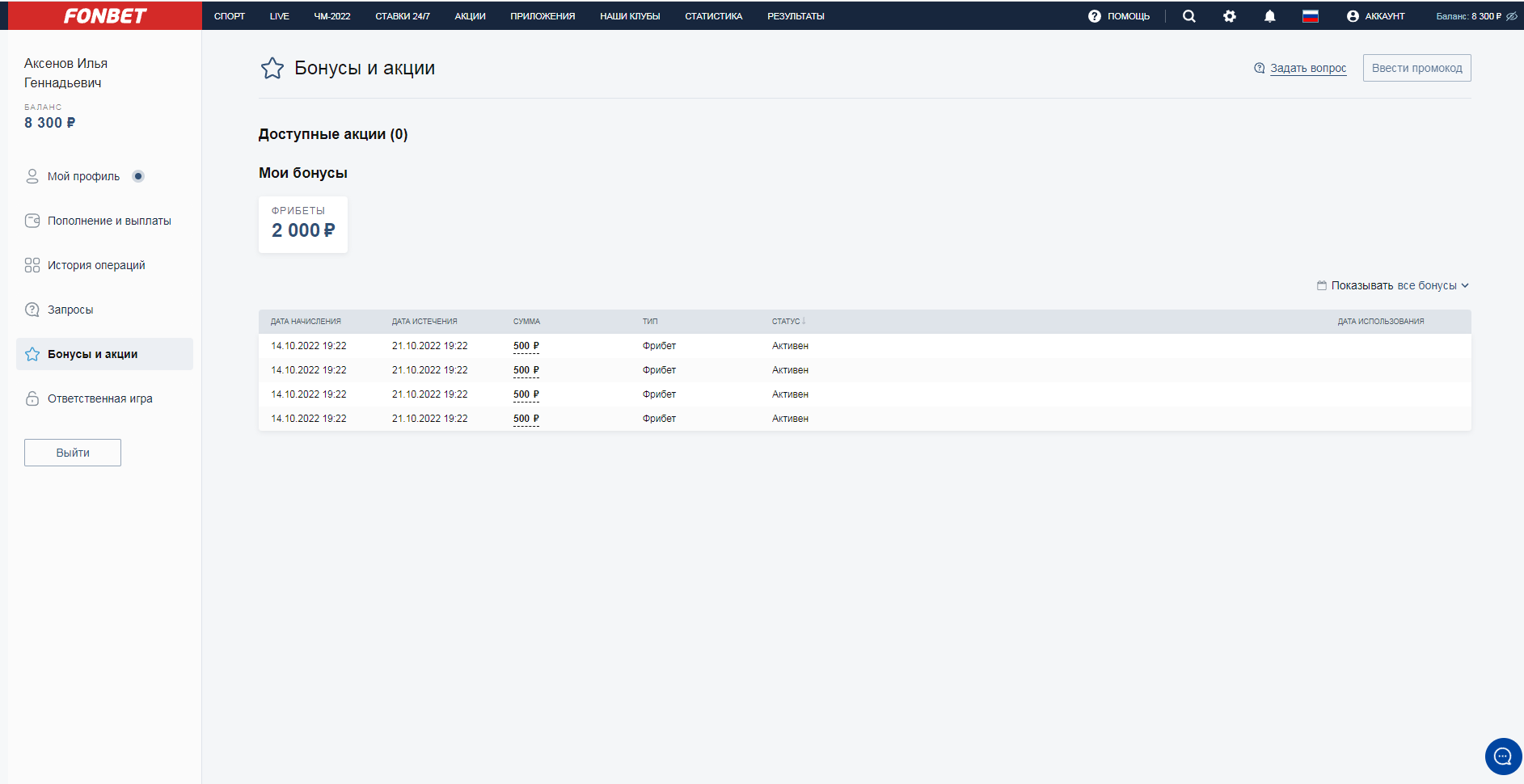 вот профиль, в бонусах там 2 тысячи с мобильного приложения, они и не пропадали, единственное их ставить нельзя было, у меня отняли 15 тысяч фрибетов