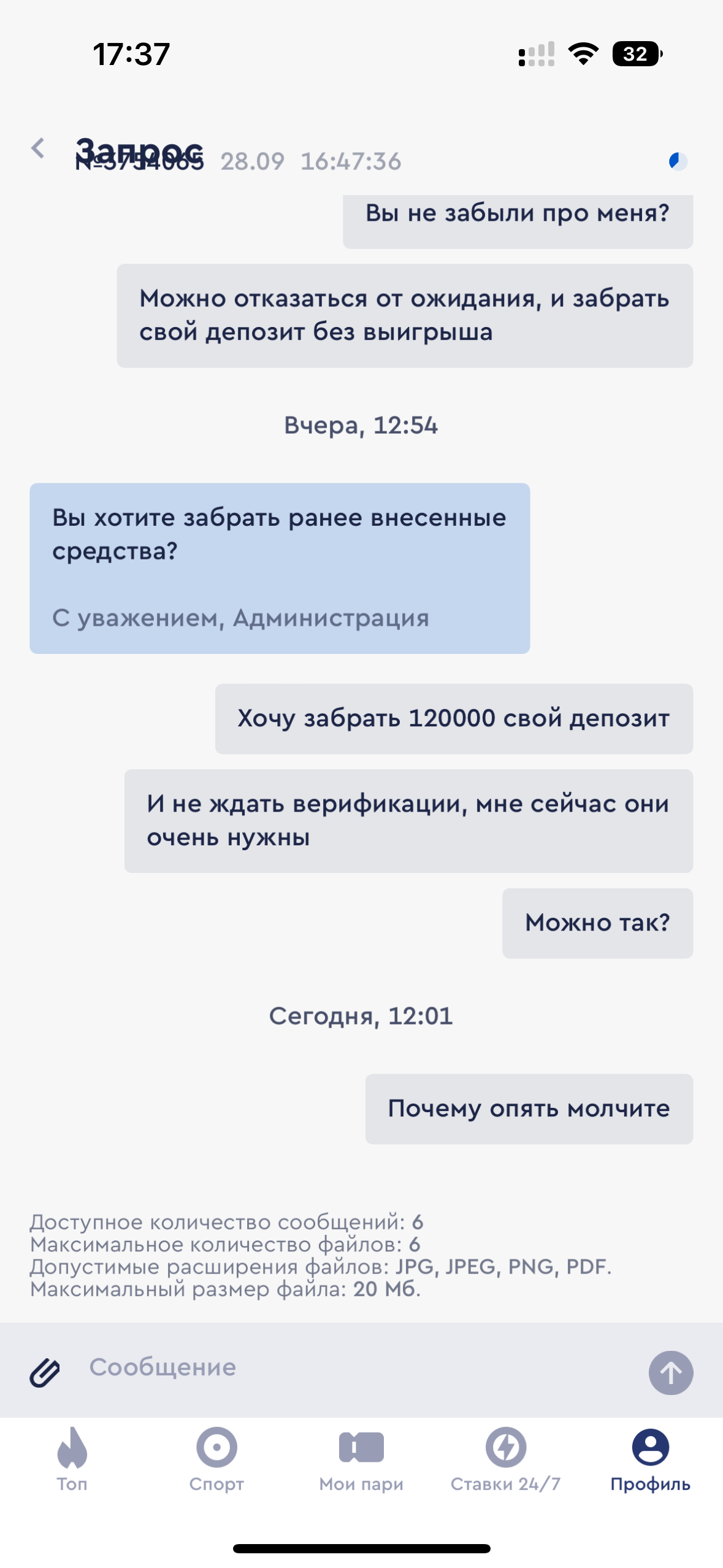Попросила отдать мой депозит без выигрыша, все равно игнорят