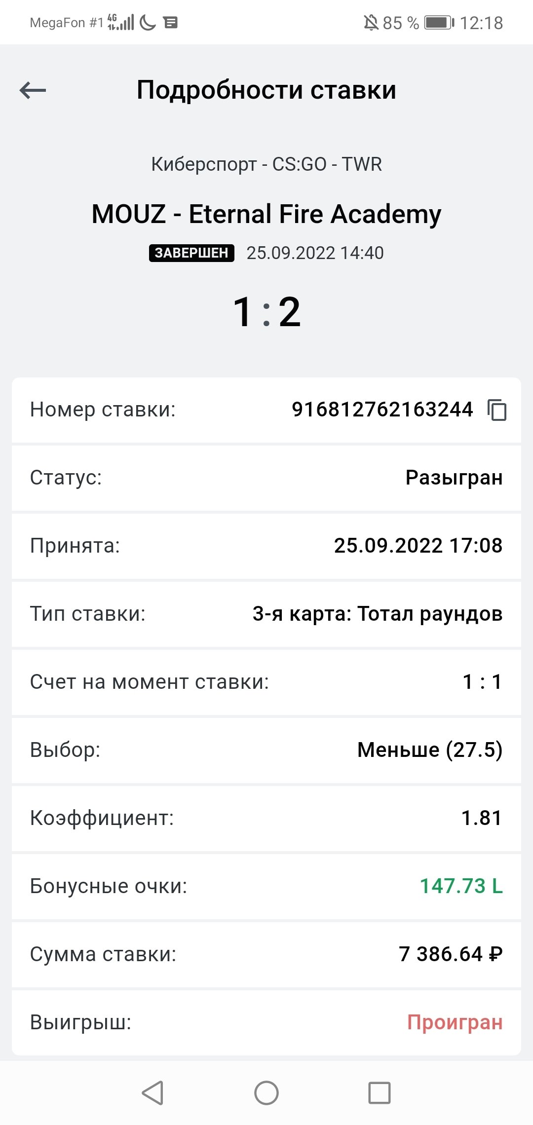 Здравствуйте, сделал ставку 25 числа, 26 началась проверка аккаунта и все ставки соответственно удалили, то есть попросить отмену я не мог. Ставку прошу отменить так как играли команды mouz - eternal fire, а в купоне указана eternal fire academy, которые являются второй командой организации. Согласно правилам бк леон "отменить ставку можно в первые 15 дней с момента ставки". Но оно действует если я не сумел отменить ставку по независящим от бк причинам(правило ), но так как меня в тот момент заблокировали, я не видел ставки, то есть причина зависит от бк