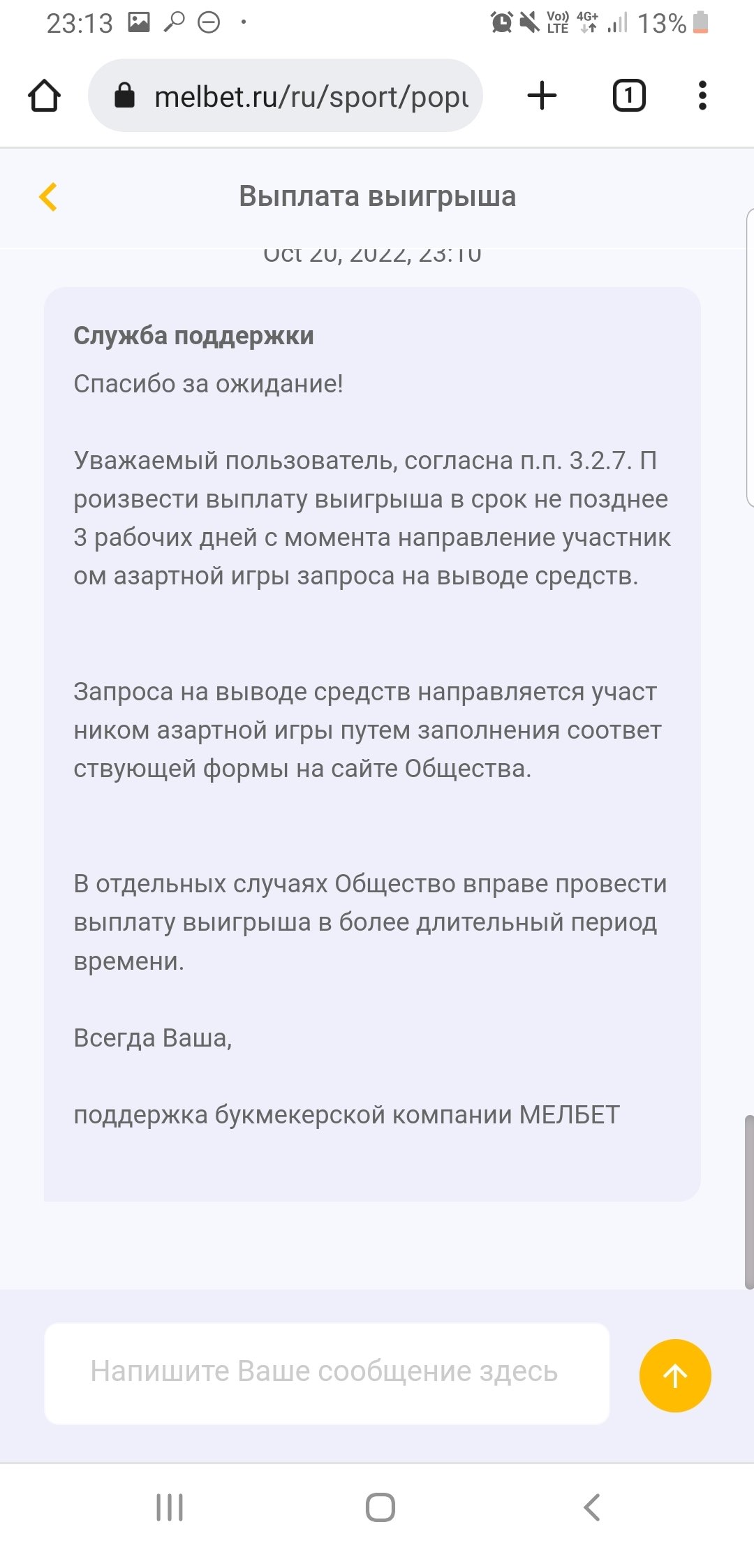 Компания Мелбет намеренно задерживает выплаты выигрыша!!!