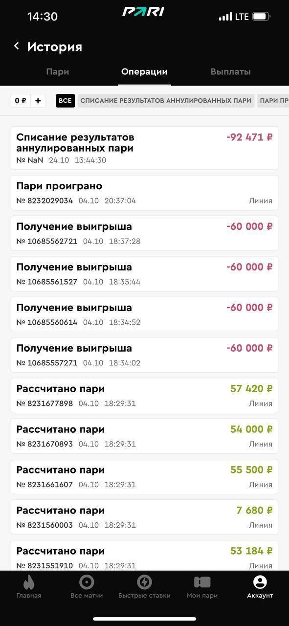 Доброго времени суток! Помогите разобраться в ситуации. Решил я попробовать поиграть на ставках на сайте . Успешно зарегистрировался и начал разбираться что к чему. В течении нескольких дней делал ставки, что то проигрывало, но были и выигранные ставки. По истечении дней пяти, а именно мой аккаунт заморозили, с формулировкой запрещено делать ставки и снимать денежные средства. Я обратился в поддержку , на что мне сказали прислать к ним фото моих документов( порядка 10 фотографий). Я все отправил и стал ждать. Через недели мне пришло сообщение что мне назначена видео конференция ( верификация) и ближайшая дата через неделю , а именно . В назначенное время со мной созвонились в скайпе и задавали вопросы, на которые я уверено отвечал. По прошествие верификации сказали ожидайте еще неделю. Сегодня мне пошёл ответ: «Привет, на связи PARI! Роман, по результатам проверки было принято решение, что игровая деятельность для вас на нашем ресурсе недоступна. Согласно п.п. . - "Букмекерская компания вправе отказать Клиенту в участии в азартной игре на свое усмотрение, а также в предоставлении доступа к Личному кабинету в случаях невыполнения им требований, установленных пунктами 2.1, 2.2, 2.3, 2.4, 2.4.1 настоящих Правил." Результаты проверки игровой деятельности, проведенной в соответствии с данными пунктами настоящих правил разглашению не подлежат. Правила размещены на нашем сайте по ссылке: С уважением, команда PARI» Аккаунт полностью заморозили , оставшиеся деньги (92 471₽) со счета пропали Убедительная просьба разобраться
