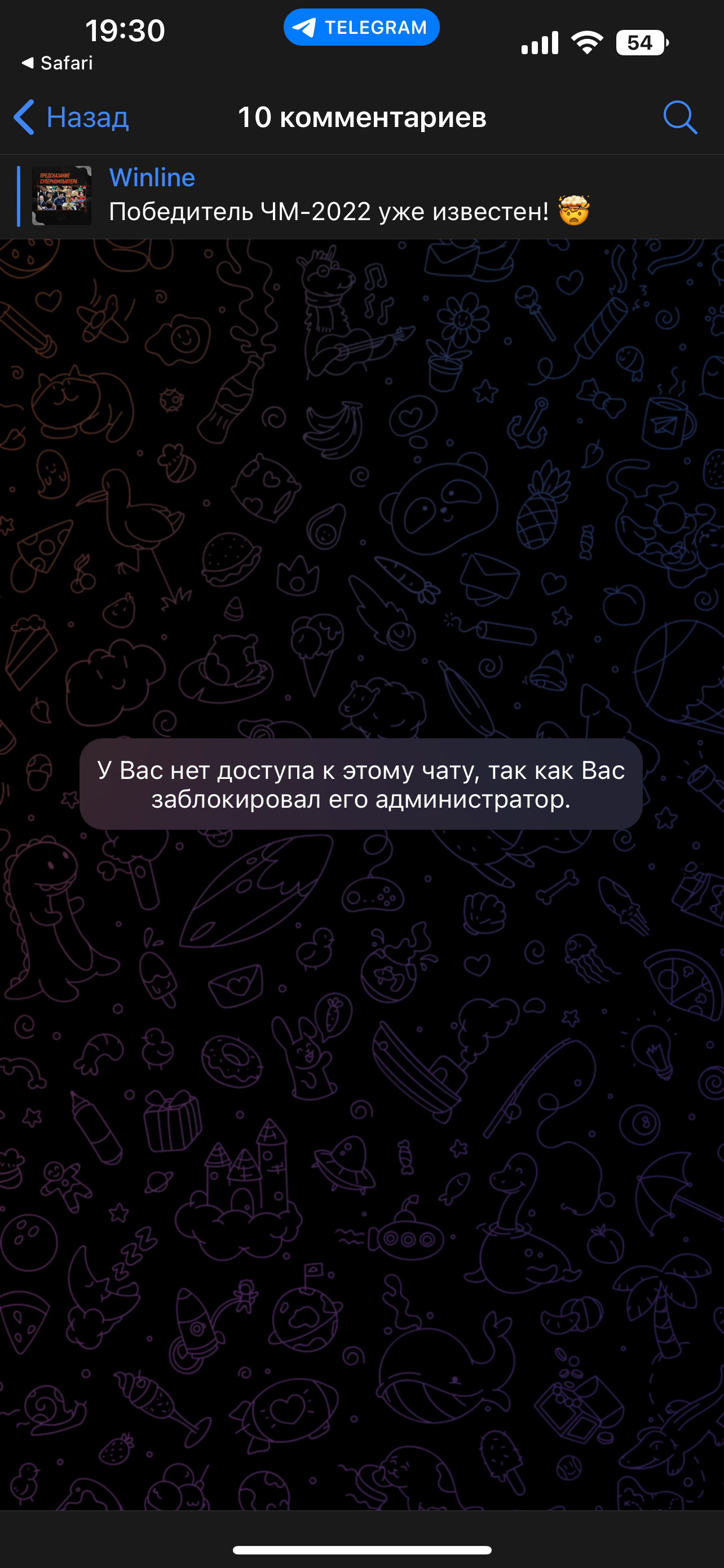 Я удивилась что в официальном телеграмм-канале Winline нет отрицательных сообщений) решили написать про массовую блокировку, в результате заблокировали и там)))