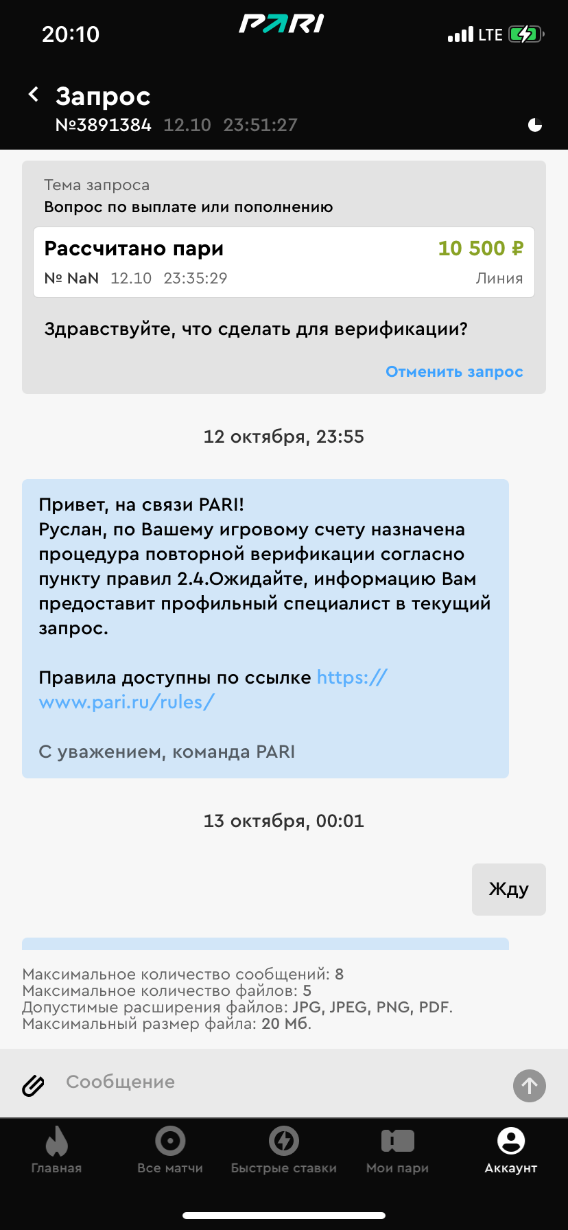 Добрый вечер. г. Парибет запросили документы. Все документы я предоставил. Рассмотрение документов длилось до сегодняшнего дня. Сегодня списали 18000 со счета и в запросе так и не ответили в чем причина.