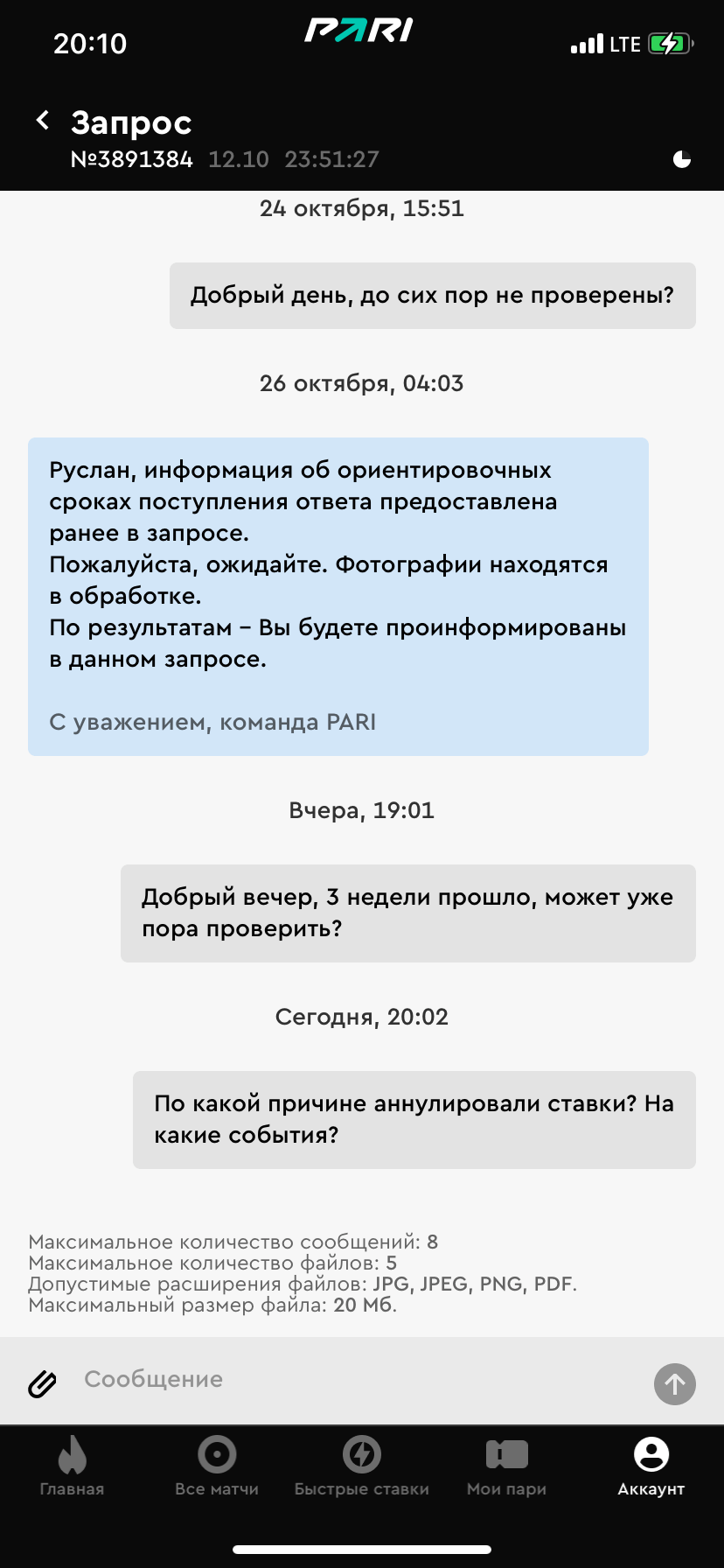 Арбитраж Легалбет получил комментарии и разъяснения со стороны букмекера - выигрыши по решению службы СБ аннулированы за нарушение правил - мультиаккаунт. При этом владелец аккаунта идентифицирован согласно законодательству РФ. Арбитраж Легалбет ставит под сомнение законность аннулирования выигрышей при пройденной идентификации. Решение этого вопроса за пределами компетенции Арбитража.