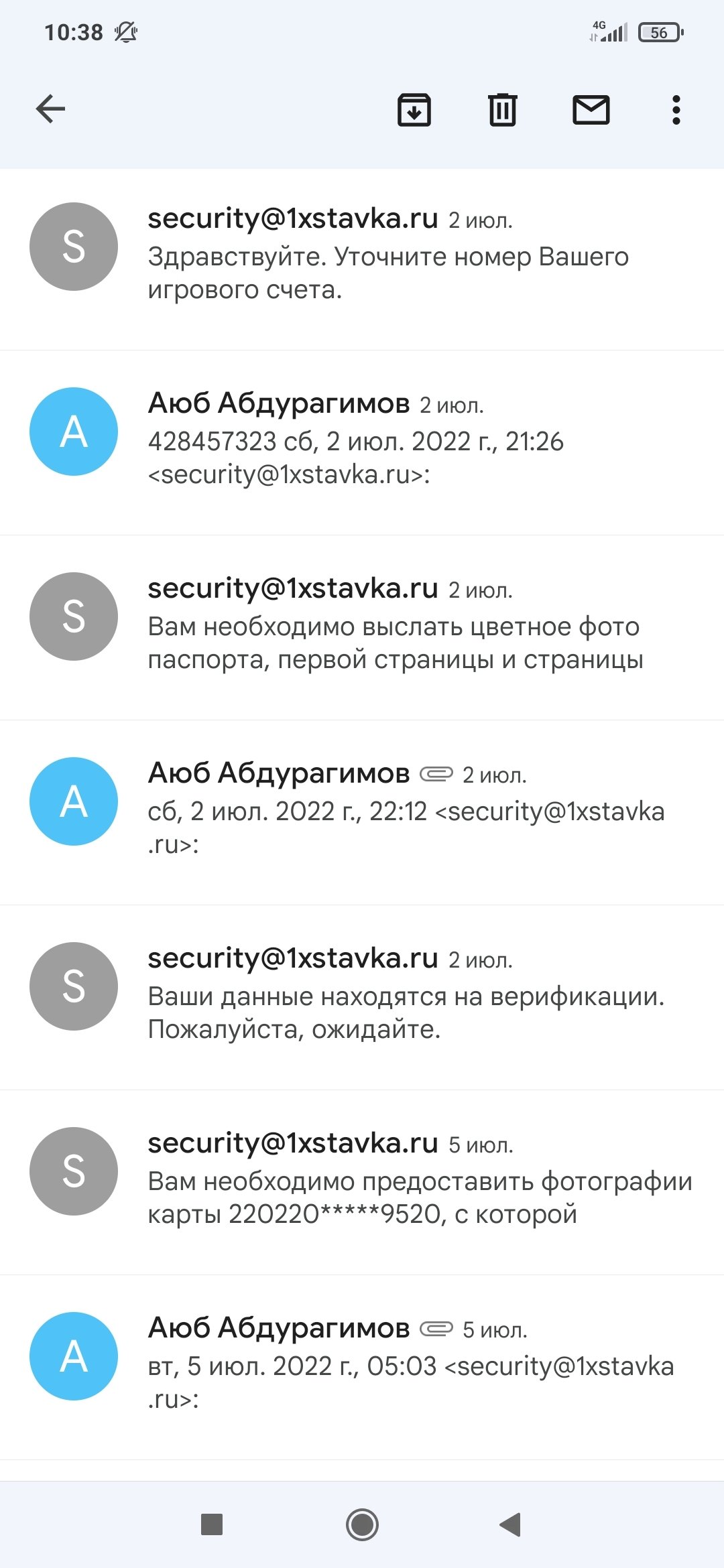 Доброго времени суток. Зарегестрировался я в букмекерской конторе в мае месяце. Удалось что то выиграть и решил вывести букмекер запросил верификацию. Начал проходить верификациб 2июля а 10июля букмекер разрешил вывод . Но за время пока проходил верификациб я проиграл большую часть выигрыша. Я начал играть на остаток и удалось ещё немного выиграть. Я дажотел вывести деньги но букмекер Запросил уже 2раз верификацию. Попросил паспорт права водительские загранпаспорт ЖКХ Снилс Инн и всё по несколько раз. Помогите мне решить проблему пожалуйста. Вот мой номер счета: id 428457323