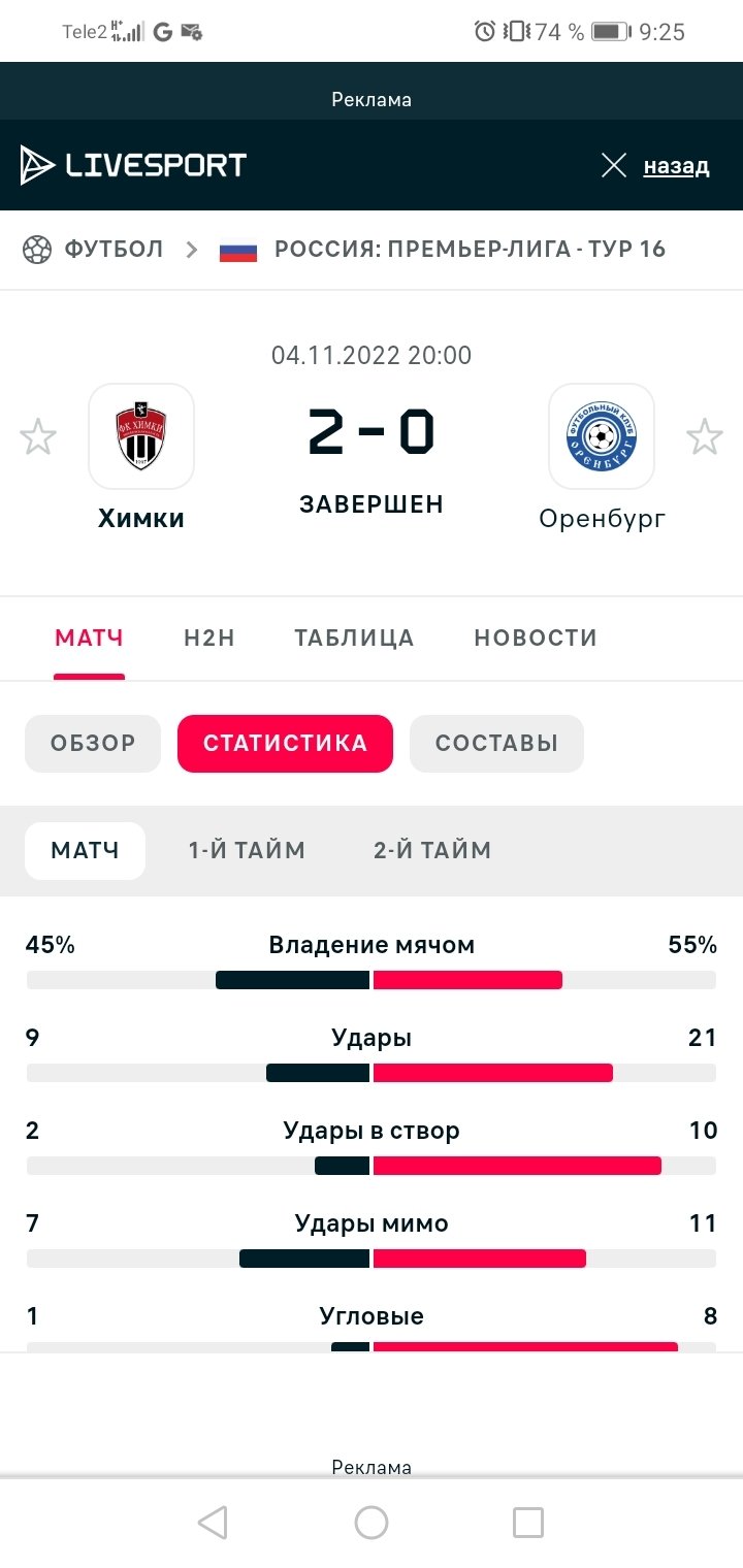 1хставка, Матч Рпл Химки - Оренбург Брал инд. Тотал ударов в створ больше 8,5 Оренбург На многих источниках 10 ударов в створ. В том числе на сайте у них самих. Но ставка расчитанна как проигрыш.