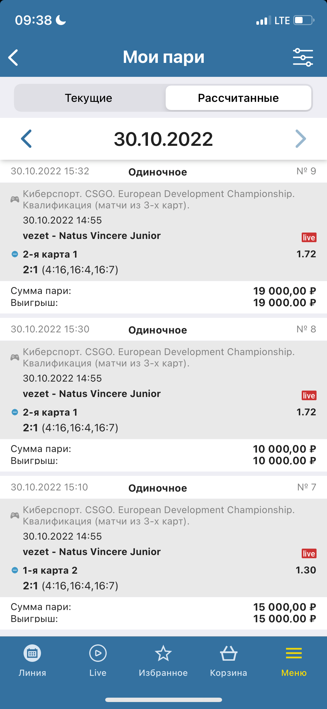 Здравствуйте уважаемые читатели. Случилось крайне нелепая ситуация! я решил поставить ставку на букмекере БетСити на команды vezet vs navi junior. Я завёл на аккаунт сначала 15 т.р. И поставил ставку №7, затем довёл ещё 10 т.р… однако не стал ставить на кф 1,1 потому что не имело смысла. Я ждал момента на вторую карту и сразу как она появилась поставил на пари 8 Затем мне через 2 минуты рассчитало первую ставку в 19,5 т.р из которых я вывел 500 рублей и поставил 19к на пари №9. Уже получается, что я мог вывести 29 вместо 25 которыми я пополнил бк. В надежде, что появится 3 карта я ждал и смотрел игру дальше. Однако мой аккаунт заблокировали. Даже не ограничили, а заблокировали и я в течение неделе пытался его разблокировать. Скидывал в саппорт: паспорт ,военный билет , права и селфи с датой и паспортом. Наконец у меня получилось разблокировать аккаунт, однако на нем лежало 24,500. На мой телефонный звонок в поддержку, что это нечестно и я мог вывести 29 и объяснял им что по скриншоту я уже проставил больше. Мне ответили, что вернули все в кф1. Хорошо, если вернули в кф1, у меня проставлено больше, у меня уже был расчёт сразу. Они должны были хотя бы не расчитывать а вернуть ставку. Я считаю это не справедливо! Разберитесь пожалуйста с моим случаем. Возможно я не корректно все описал, но думаю вы поймёте мои мысли. Я хотел бы получить свой выигрыш.