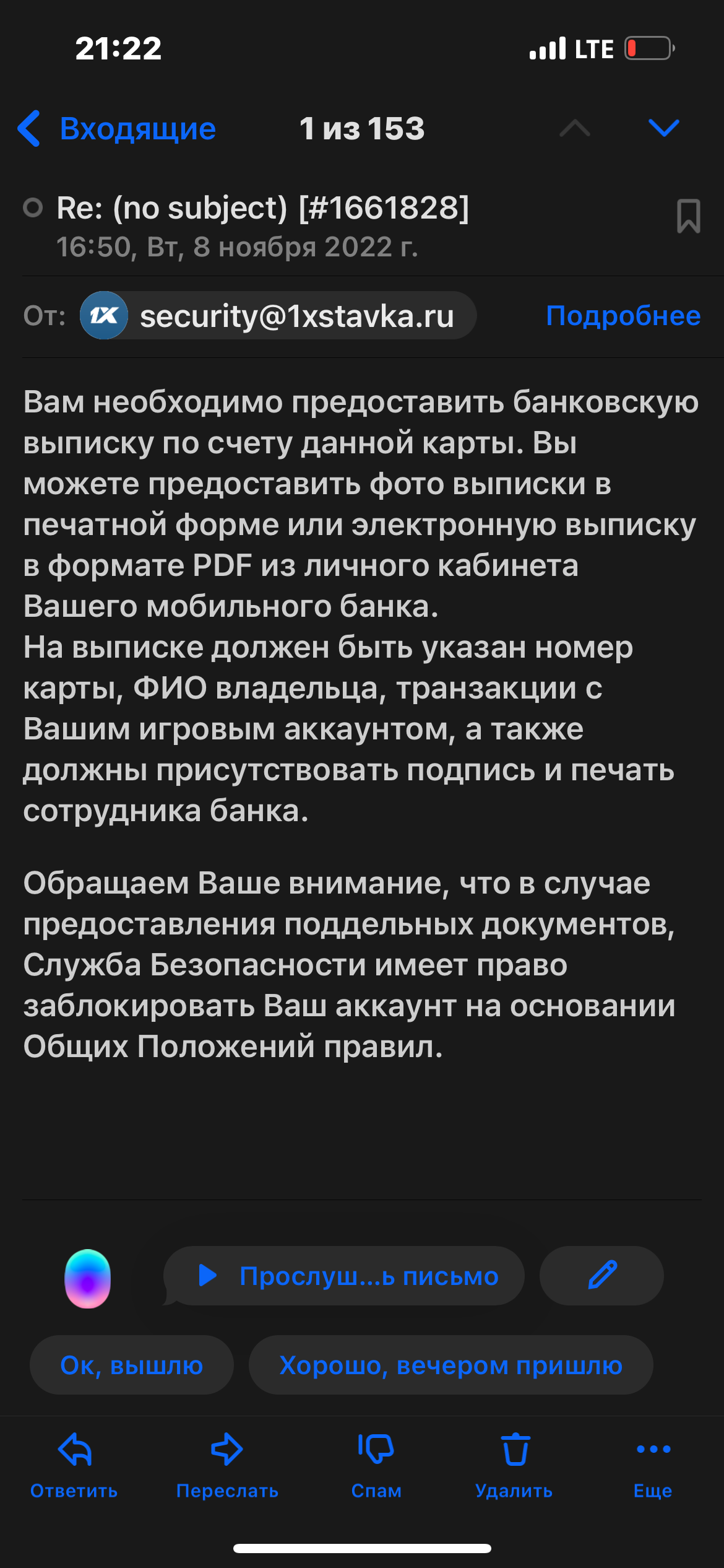 Начал играть и хотел вывести деньги, вывод заблокировали и начали просить фото, отправлял им фото что-то принимают а что-то нет, проверка идёт пол года ,просят фото документов ,я им отправляю а они не принимают банковские выписки
