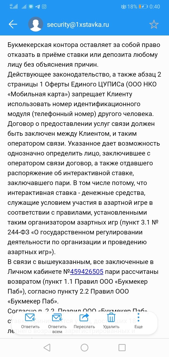 Какой то кошмар, ладно вернули ставку, но деньги свои то я не получила до сих пор. Изначально обращалась в поддержку что бы убрали мне 2х факторную верификацию, мне не приходит с неё код. Это щас они мне так типа проблему решили? Я все равно не могу зайти в аккаунт, они ничего не сделали с августа только запрашивали всякий бред. Денег нет, поддержка ничего не решает