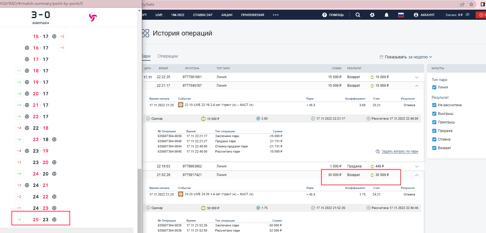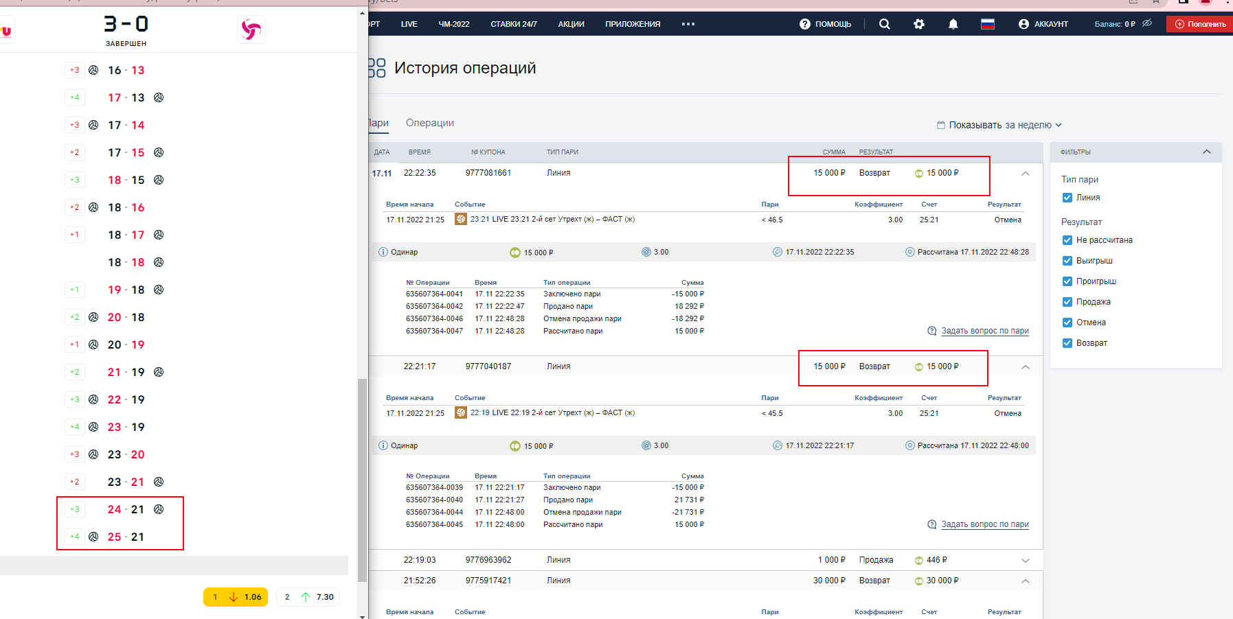 - снова ответ, то есть я сделал возврат ставок, а они мне их отменили!