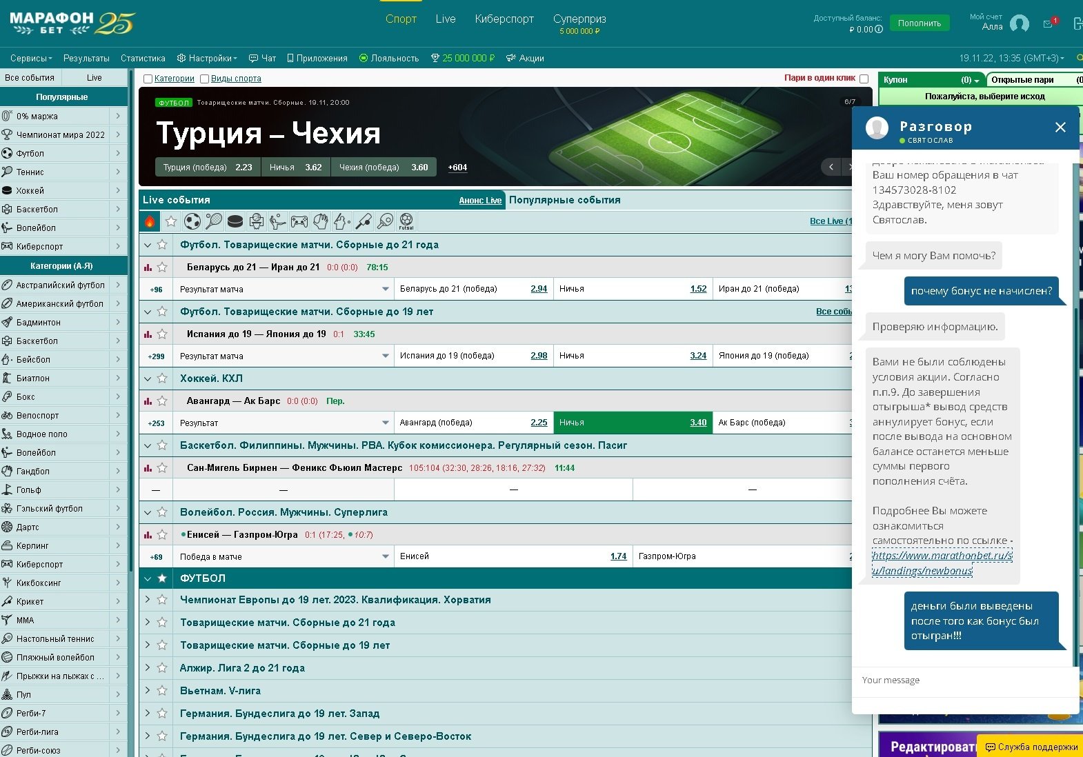 Проблема с бонусными средствами