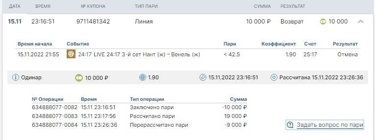 15-го ноября этого года я,предварительно слив приличное кол-во денег,сделал последний депозит в размере 10 т.р. с целью либо всё отыграть либо слиться окончательно.В качестве ставки мной был выбран тотал на воллейболе,дабы быстрее узнать,что уготовила мне судьба.Пари сыграло,я был счастлив и поспешил вывести деньги,но не тут то было.Сперва мне просто отменили вывод,а после второй попытки сделали перерасчет ставки.Пари было анулировано,я получил на счет свои 10 т.р. и блокировку аккаунта.В итоге,выполнив все требования администрации,получил ответ:ожидайте 72 часа.ВАЖНО! В требованиях просили фото карты с которой я делаю депозиты.Я ответил,что в пластике карты никогда не было,т.к. полтора года назад из банка я её не забрал и с тех пор пользовался ей благодаря NFC в смартфоне.Док-ва моих слов в виде скрина из лк Сбера я предоставил.Выписку по карте и инфомарцию по счету предоставил также и админы это приняли. И ВОТ СПУСТЯ 72 ЧАСА МЕНЯ ПРОСЯТ ПОЛУЧИТЬ В БАНКЕ КАРТУ И СФОТКАТЬСЯ С НЕЙ!!! Вы издеваетесь на до мной? Мало того,что у вас существуют какие-то странные пункты в правилах,которых позволяют бк рассчитать любое пари как проигроwное,если им так захотелось,так вы еще и депозит мне не собираетесь возвращать? Проwу реwить эту проблему.Номер аккаунта 15560207
