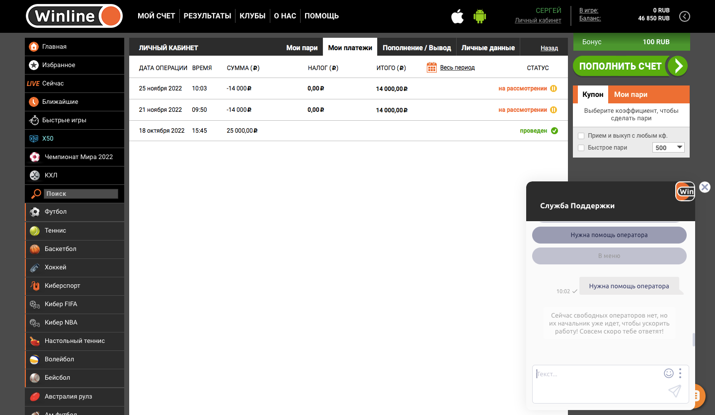 запросили у меня повторную видеоверификацию, ее я прошел сразу но после этого начались проверки какие то, хотя я ее прошел по видео в реальном времени. затем на сайте высветилось загрузить документы я это сделал, затем пришло сообщение на почту загрузить документы и это я сделал. следом на сайте попросили карту с которой я пополнял букмекерскую контору, и это я сделал. на сайте высветилось что индевикация завершена и я поставил деньги на вывод, прошло более четырех дней а результата ноль, так и висит на рассмотрении, хотя у них же указаны сроки на рассмотрение от одной минуты до 24х часов. ПОМОГИТЕ РЕШИТЬ ПРОБЛЕМУ