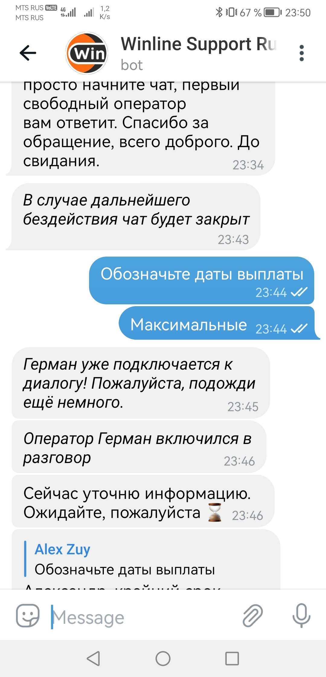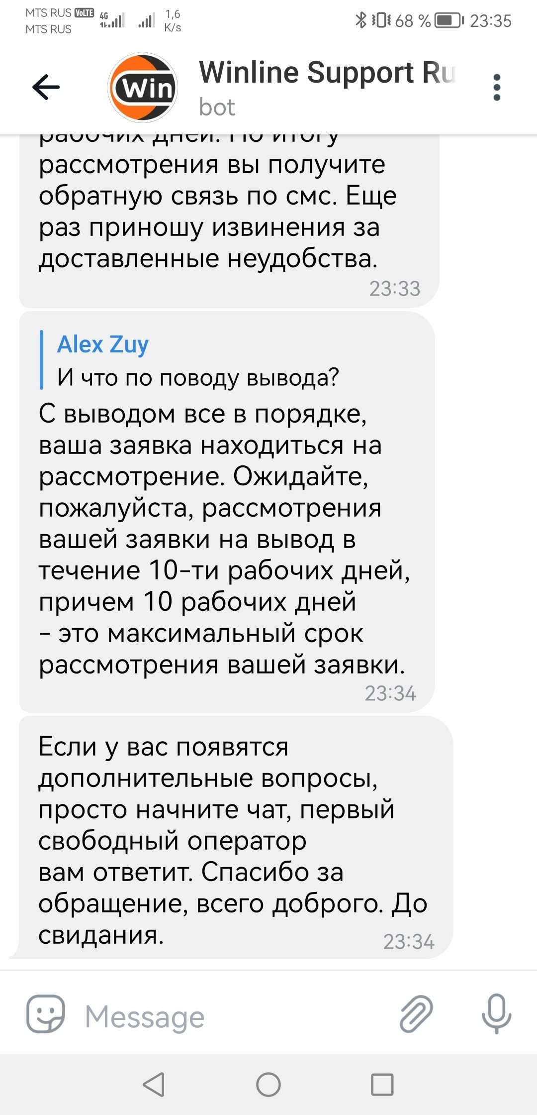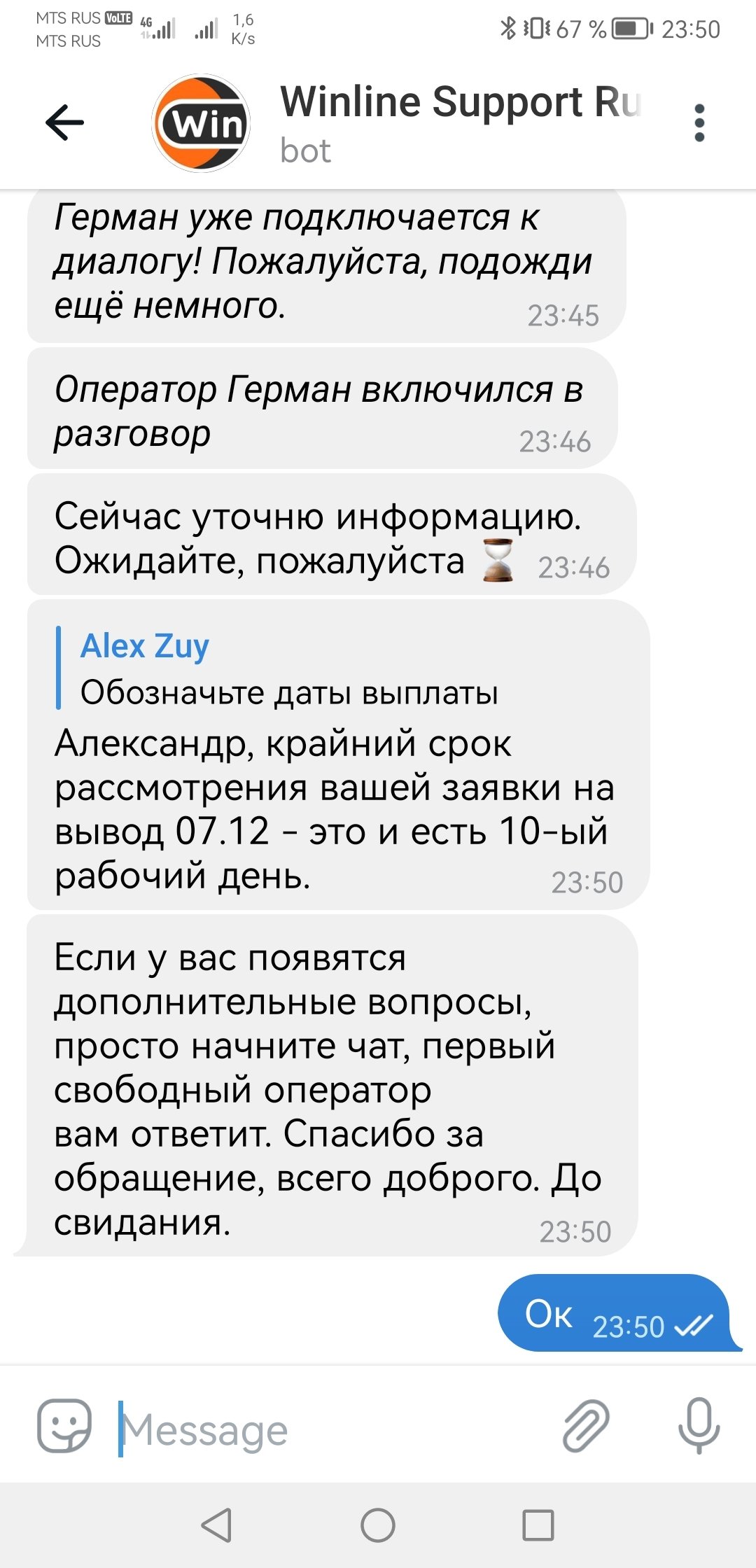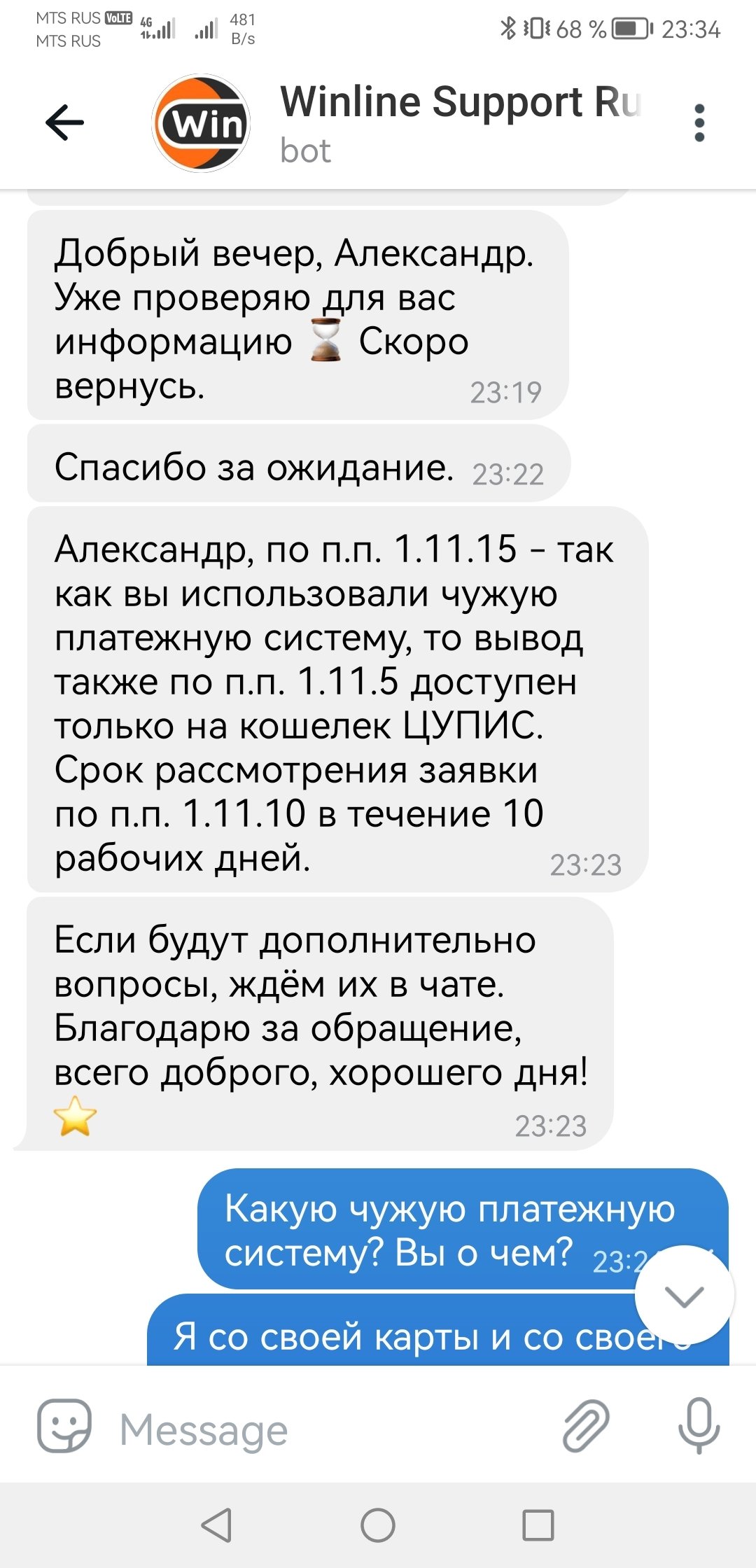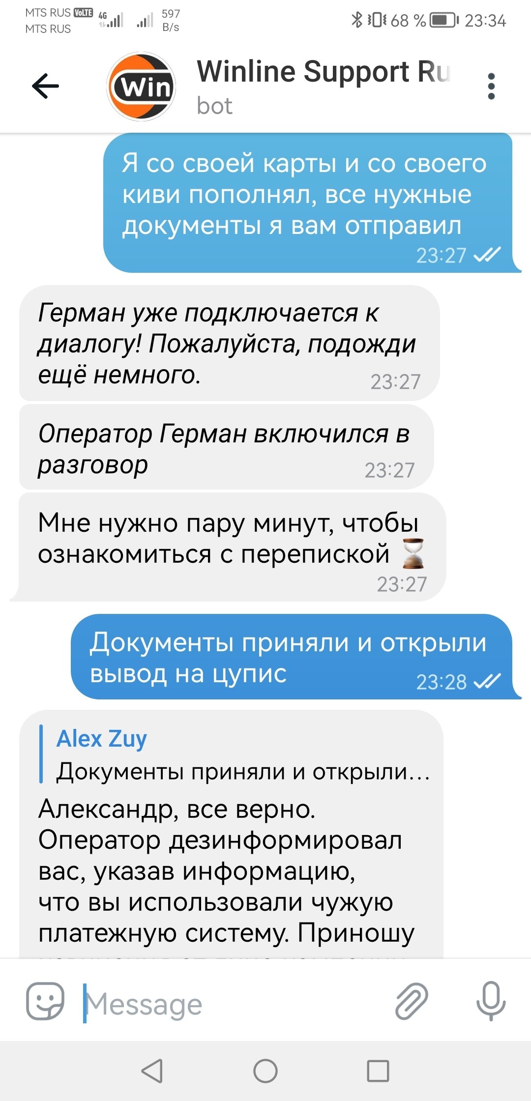 И снова здравствуйте. Третья часть моего рассказа о винлайн. Честно говоря руки опускаются, когда видишь такое. Краткий пересказ предыдущих серий: Аккаунт довольно давно у меня, летом на нем только проигрывал, осенью, как вернулся нба - начал потихоньку выбираться из минусов. Ставки делал ТОЛЬКО на исходы, тоталы и форы, спорт - топлиги баскетбол, хоккей и футбол. Никаких настолок или киберспорта, никаких статистик и прочего, так как начиталс, что на такие линиии лучше не ставить, так как есть расхождения по источникам и прочие проблемы слабых линий. После того, как отыгрался и плюсанул - мне прилетел вериф. Это обычное дело, так как я уже отыграл практически все БК из предложенных мне цуписом и везде рано или поздно были верификации. Часть верифов я тут освещал, так сказать в реальном времени - возможно для начинающих игроков это может быть подспорьем. Верификацию прошел очень быстро, постояно звонил им на горячую линию, интересовался что еще дослать, нормальные ли фотографии и прочее. Все документы приняли, вывод открыли. Вывод был только на цупис. 22го ноября я поставил выигрыш на вывод. Обычно вывод проходил моментально, но в этот раз мне сказали ждать до 10 рабочих дней. Ну ладно, бывает. Я не тороплюсь. Сегодня, в качестве издевки мне даже прислали фрибет!! Проставить я его естественно не смог, так как максы порезали до 100р. Но я подумал, что это хороший знак. Далее сегодня же получил сообщение от Дмитрия Демина, что с моим аккаунтом все хорошо и надо дождаться установленного срока. И сразу после того, как я это прочитал - мне на почту прилетела отмена вывода и аккаунт заблокировали. Инструкций, как его разблокировать не прислали. Такого ада я не видел НИГДЕ! После других верифов до сих пор делаю ставки на Леоне (самый лучший БК, как по мне), Зените и Теннеси. Их мои ставки и манера игры устраивает, а винлайн просто заблокировал наглухо аккаунт. Что делать, легалбет?