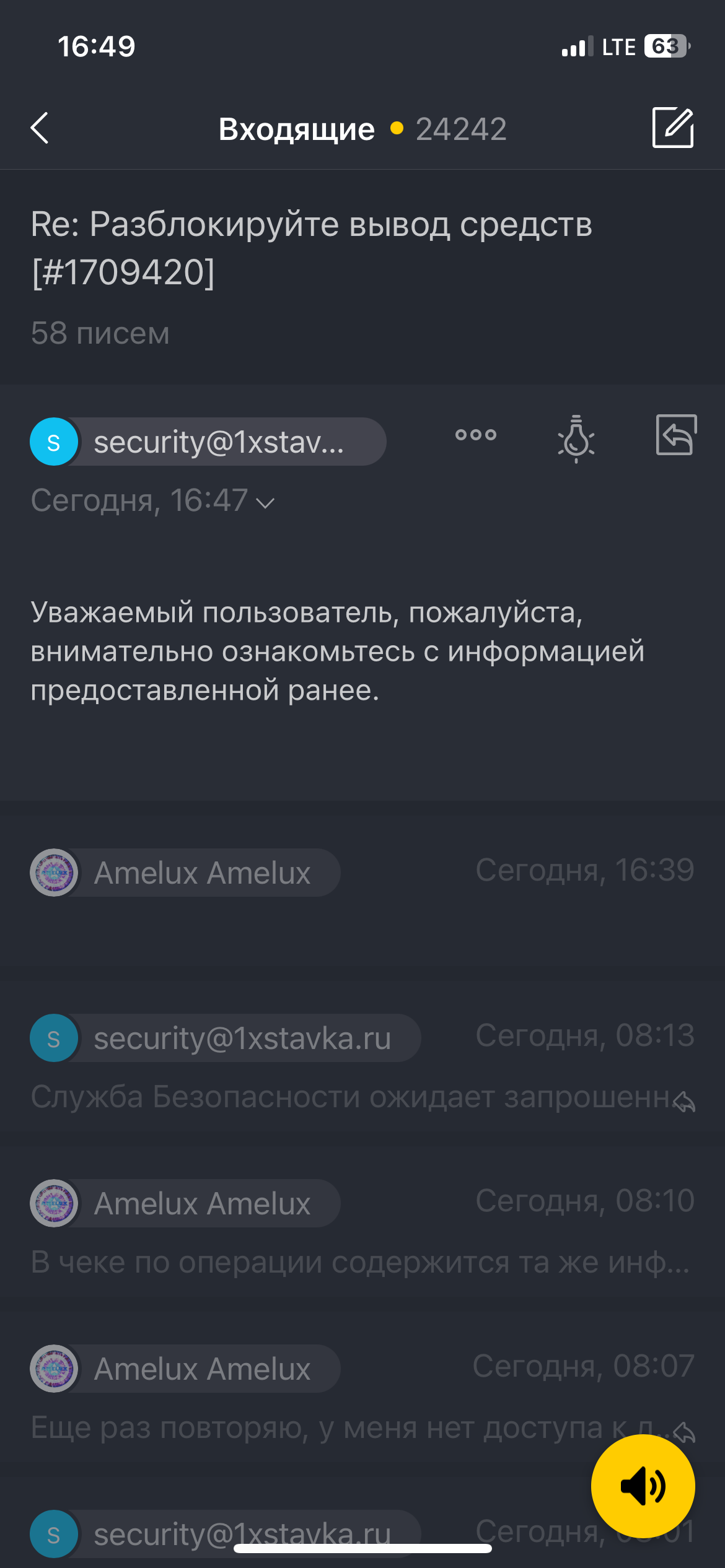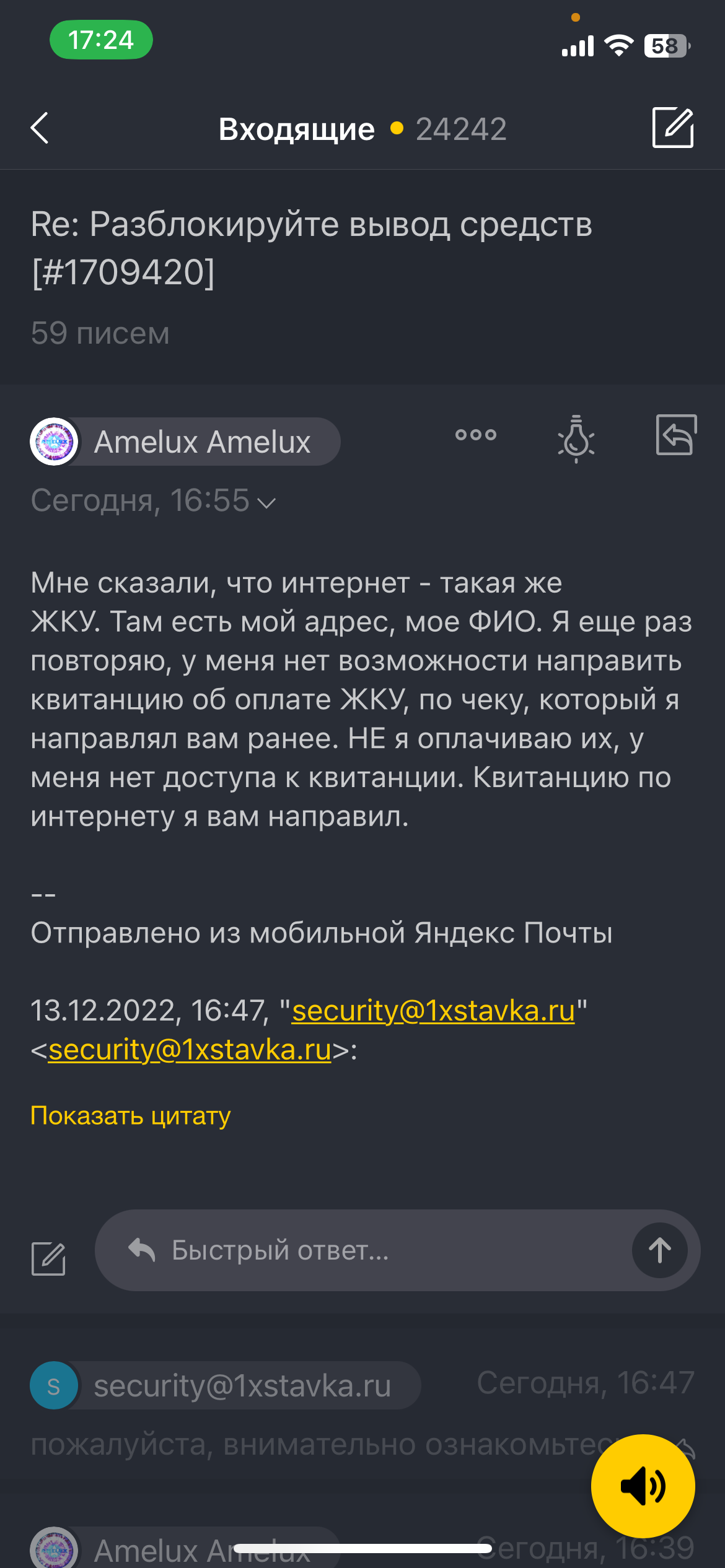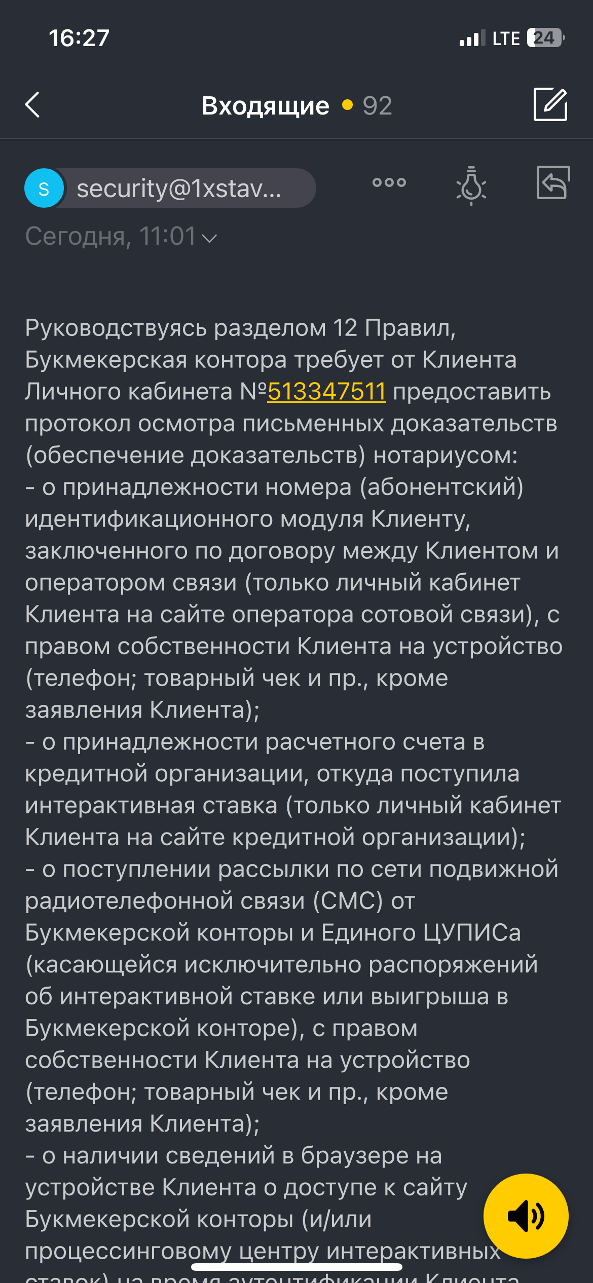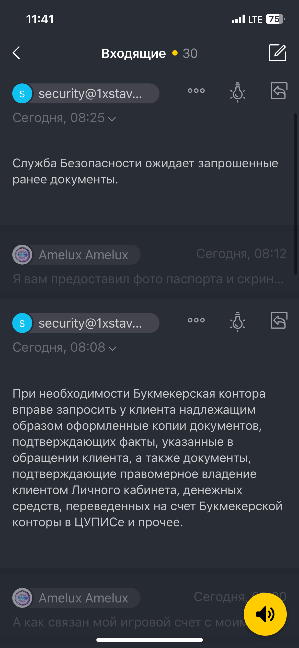 Произвел регистрацию в 1хСтавка, все данные в ЦУПИС у меня подтверждены. Пополнил баланс на 70000, выиграл двумя ставками около 30000 рублей, после этого не могу вывести ни свой депозит, ни всю сумму. Запрашивают документы, отвечают по 3 дня, это в лучшем случае. Паспорт направил, проверили, карту мою проверили, выслал фото свою на фоне паспорта и переписки со службой безопасности. Я не понимаю, на каком основании они теперь запрашивают мой договор с оператором? Да еще и оригинал. Номер переходил с одного оператора на другого, мне выдавали только соглашение об уступке прав и передаче обязанностей. Как мне вывести хотя бы свой депозит без подтверждения всех этих документов? Это мои деньги, которые я пополнил на баланс букмекера, цупис никакие ограничения мне не выставлял. Помогите, пожалуйста, решить вопрос. Мне деньги нужны в скором времени. В поддержке помочь не могут, просто говорят, чтоб я ожидал в среднем 72 часа(даже точных сроков не называют, типо в порядке очереди)
