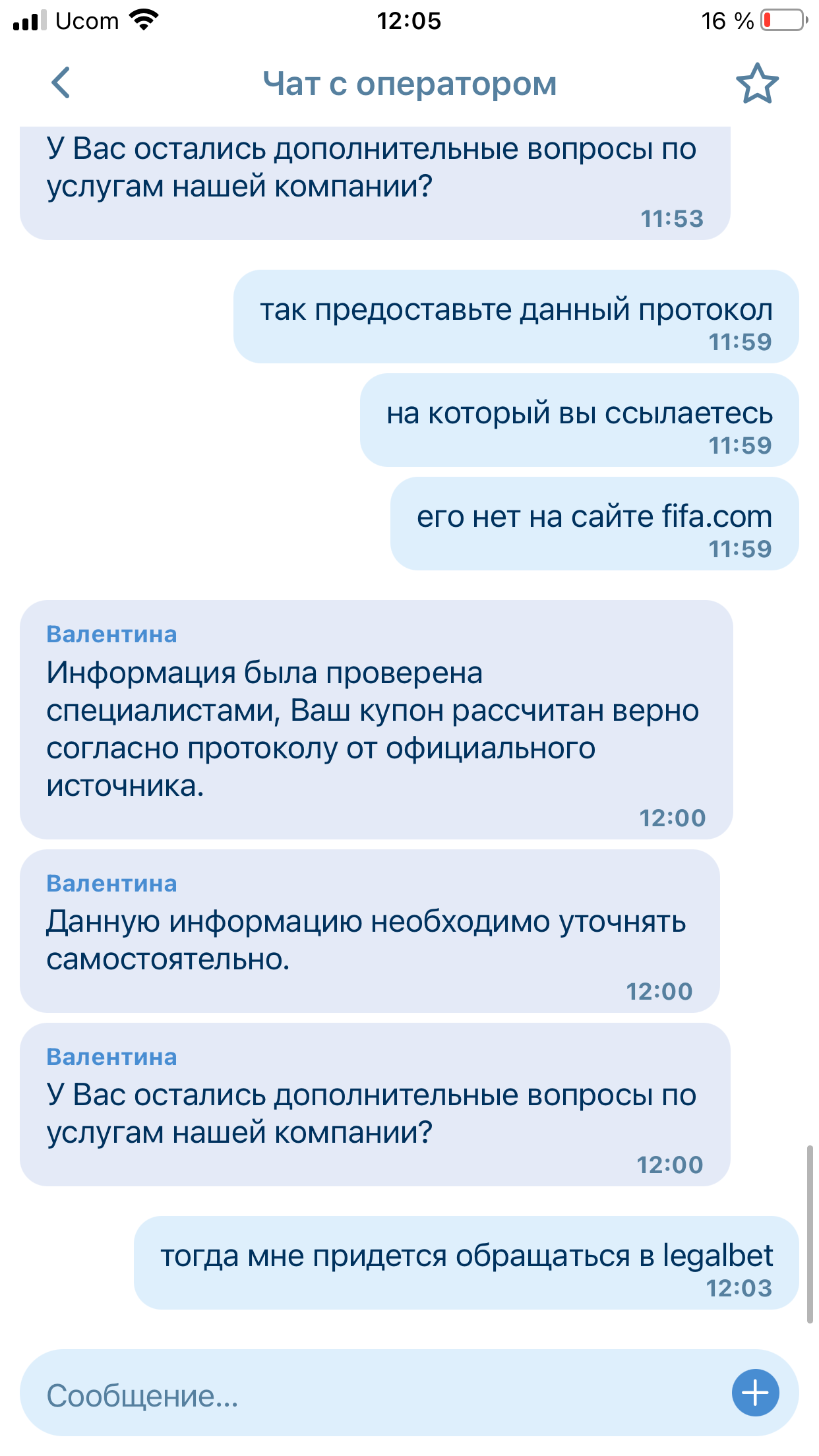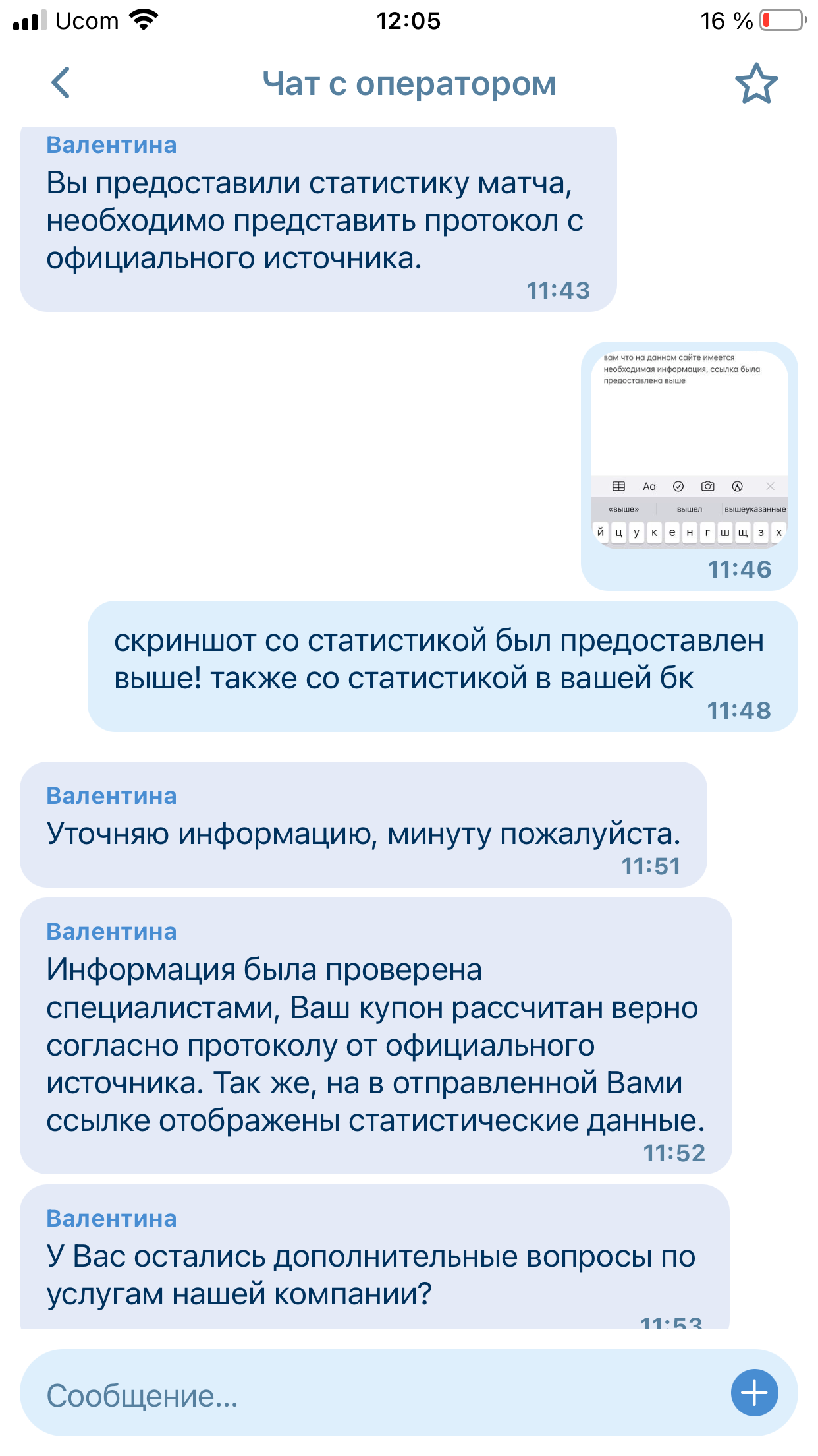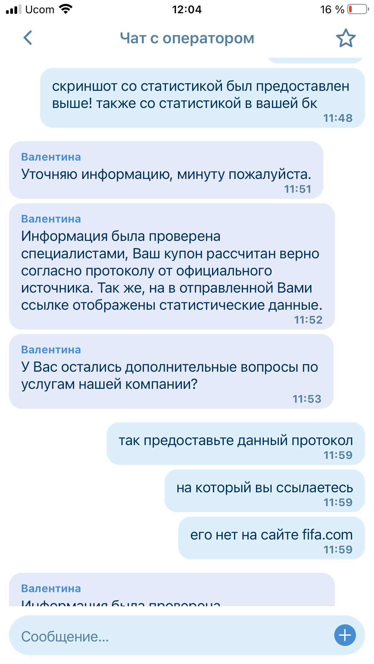 В том то и дело, что букмекер об этом не указывает в переписке, которая была скинута ниже. Я поэтому и спросила у них на каком основании они рассчитали данную ставку проигрышной.