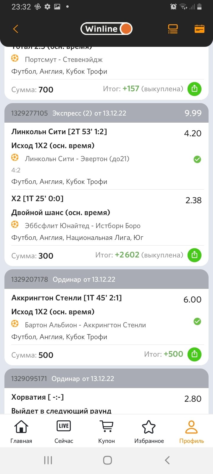Клиент всегда прав это не про винлайн точно вчера .вечером играли в англии кубок трофи поставил ставку на одну из команд каторая на тот момент проигрывала и был кэф6 на нее я поставил ставка сыграла но винлайн решил что кэф ошибочный и вернули мои 500р это ни честно я думал что это серьезный букмекер