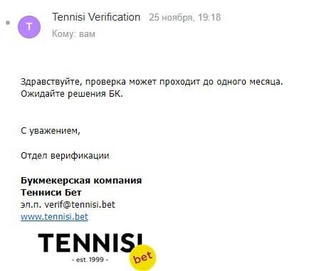 Здравствуйте, нужна помощь с БК Тенниси (67 140 рублей) Более месяца удерживают средства после того, как я им предоставил ВСЁ, что они хотели - документы, подтверждающие личность, видео 2-ух минутное с моим лицом и выпиской по месту регистрации. Делал ставки на dota2, футбол. Заблокировали вывод средств. Всё, что просили скинуть - скинул. Их ответы насчёт сроков показал скриншотами, сначала одно говорят, потом другое. Ждал месяц. Месяц прошёл, в итоге выясняется, что и больше месяца надо ждать, никакой определённости, никаких сроков и конкретных внятных ответов. Очень важно* - я готов пройти любые дополнительные фото/видео верификации, созвониться к отделом верификации, ответить на любые вопросы по ставками, показать ВСЁ, что они хотят, потому что я знаю, что я ничего не нарушал и мои средства просто так удерживают. Я им говорил, что готов даже поехать в ближайший пункт приёма ставок их БК, чтобы дополнительно оффлайн подтвердить свою личность, а ближайший пункт приёма ставок их БК от меня - это около 300км. Я не понимаю как ЦУПИСная БК может так халатно относиться к таким вещам, я могу понять 2-3 дня, даже неделю, ну максимум две край, но месяц ожидания и это с учётом того, что мне обещали в течении месяца разобраться, а теперь и спустя месяц кормят неопределёнными сроками. На скриншотах показал их ответы по почте и скриншот текущим с балансом, где видны мои ФИО и номер счёта, а так же скриншот с датой вывода 13 000 рублей, который был заморожен 14 ноября и после этого момента вывод недоступен, и зелёная галочка висит напротив вывода, но деньги не выведены.