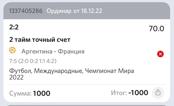 Как это ещё можно по другому понять если точный счёт 2-2 во втором тайме и ставка на такой счёт 2-2
