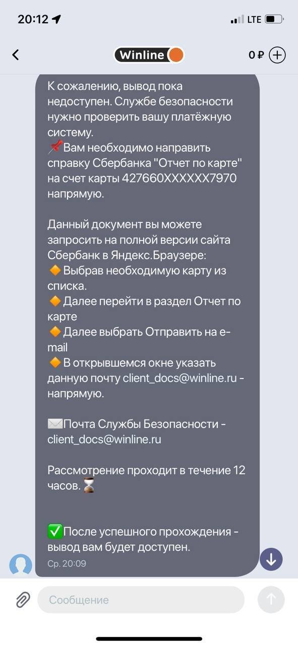 Добрый день, администрация ЛегалБет, обращаюсь к Вам с просьбой помочь мне в урегулировании спорного вопроса с БК Winline, которая занимается произволом и удерживает мой выигрыш у себя нечестным путем. Вкратце опишу ситуацию ниже: Меня зовут Рамазан, я довольно-таки давно делаю ставки в различных конторах, в БК Winline зарегистрирован уже больше года. Систематически делал ставки на различные события в некрупном размере (500-1000р) в основном на Футбол, как экспрессы, так и ординары. 28 декабря 2022 года, в 15:17 я пополнил БК Winline на 20 000 рублей, так-же как и всегда со своей карточки Сбербанк, после пополнения решил поставить экспресс на топовый Сербский баскетбол в линии. Номер ставки (1354283185) Экспресс от г. Сумма ставки 20 000Р Коэфициент - : 1. Тамис – Вршац: 1 половина исход Победа Тамис (44:39) – Выигрыш; 2. Чачак 94 – Златибор: 1 половина исход Победа Златибор (28:46) – Выигрыш; Выигрыш, который мне должны выплатить 54 600 рублей. В приложении эти игры висят как нерассчитанные, а на вопрос почему выигрыш, спустя 12 часов не поступил мне на счет, мне ответили, что ставка будет рассчитана после получения официального результата игры. Но это пол беды, до того, как матчи сыграли, мне пришел запрос на видеоверификацию, я согласился, мне позвонили по видеосвязи, поговорили со мной и сказали, что статус аккаунта вновь станет активным, но после этого в приложении мне пришел запрос загрузить фотографии карточки, я это отправил. Дальше начали запрашивать неоправданно следующие документы: - Загрузить справку Сбербанка «Отчет по карте» на счет карты напрямую, на адрес электронной почты – (Я загрузил этот документ и отправил на почту) ; - После потребовали Фото бумажного договора с печатью банковской карты на почту (Для этого мне необходимо, я так понимаю, идти в банк). Помогите разобраться в данном вопросе, для меня эта сумма существенна, и я буду вынужден обратиться в правоохранительные органы с заявлением о невыплате выигрыша и передачи дела в суд. Во вложении прикладываю скриншоты.