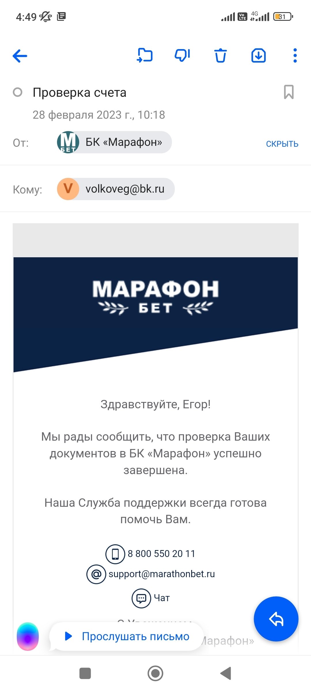 По информации от букмекера, верификация завершена, вывод средств осуществлен. Проблема решена без участия Арбитража Легалбет.