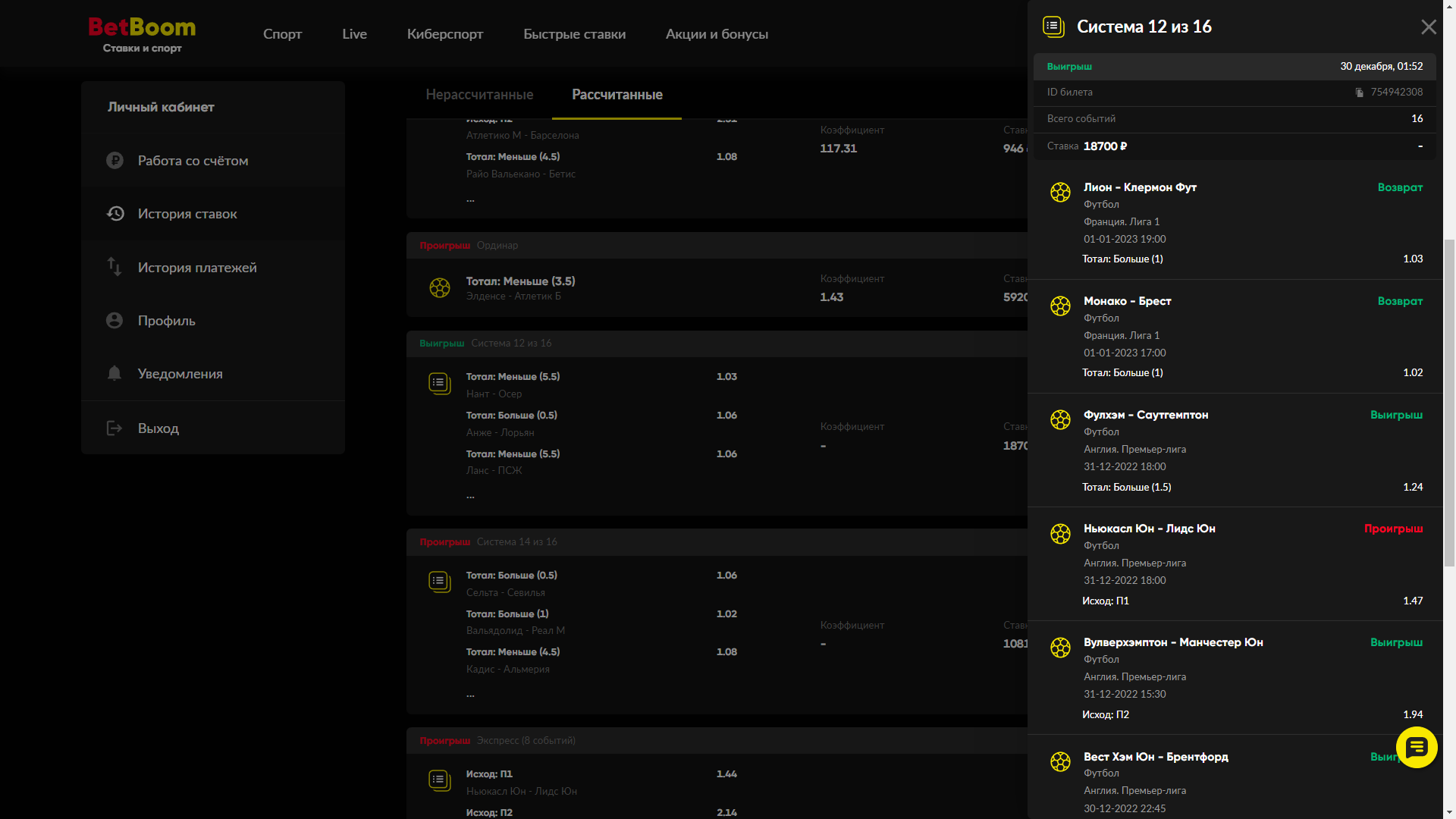 Здравствуйте. Выложите, пожалуйста, скрины ваших ставок. И хотелось бы понять, жалоба на Фонбет или Бетбум?