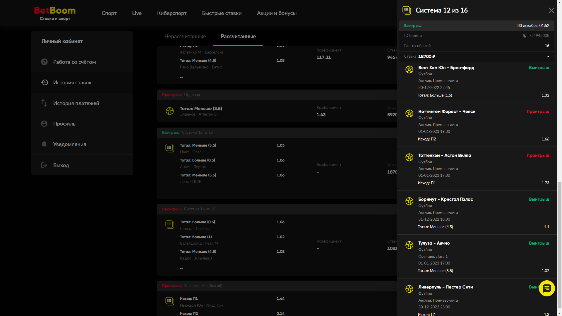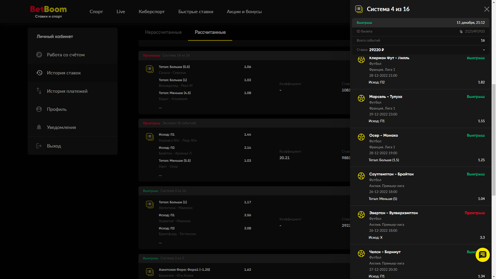 Приложил Скрины Ставок. Выигрышных.
