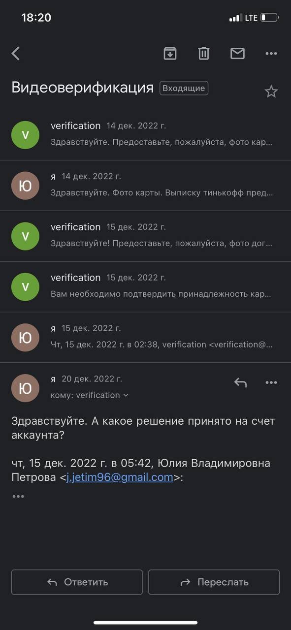 Все документы были высланы, после видеоверификации не поступало ни 1 письма, прикладываю скриншот, букмекер обманул вас.