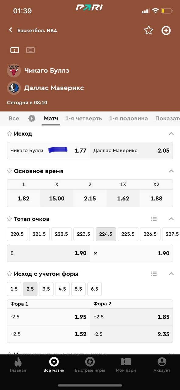 11го декабря был баскетбольный матч Чикаго Буллс - Даллас Мэверикс. На Чикаго во всех конторах был коэффициент . Появилась новость в твиттере, что Лука Дончич пропустит матч. Мною было поставлено 2 ставки общей суммой 150 тысяч рублей на Чикаго. Минут через 5 коэффициент на Чикаго упал до . В итоге ставку почему-то решили рассчитать ставку возвратом, хотя я не считаю, что ОТКРЫТАЯ информация о пропуске игроком матча является основанием для возврата. Другие конторы ставки за такой же коэффициент рассчитали плюсом. Контора отвечает, что были выставленные неверные коэффициенты, хотя в тот момент везде они были такие. Я считаю, что это полный беспредел и прошу перерасчитать ставки, как плюс.