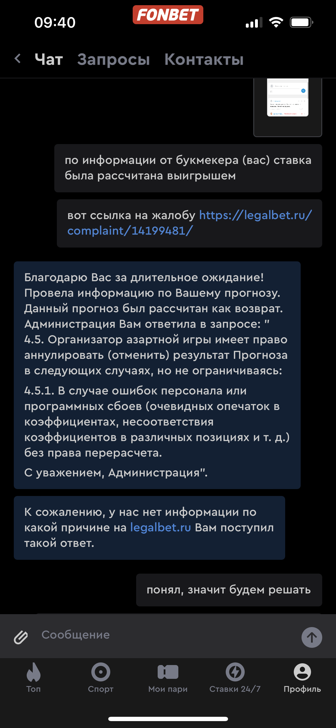 Ну, вы в жалобе вписали номер купона 12088197420. Представитель БК по этому купону и ответ дал.