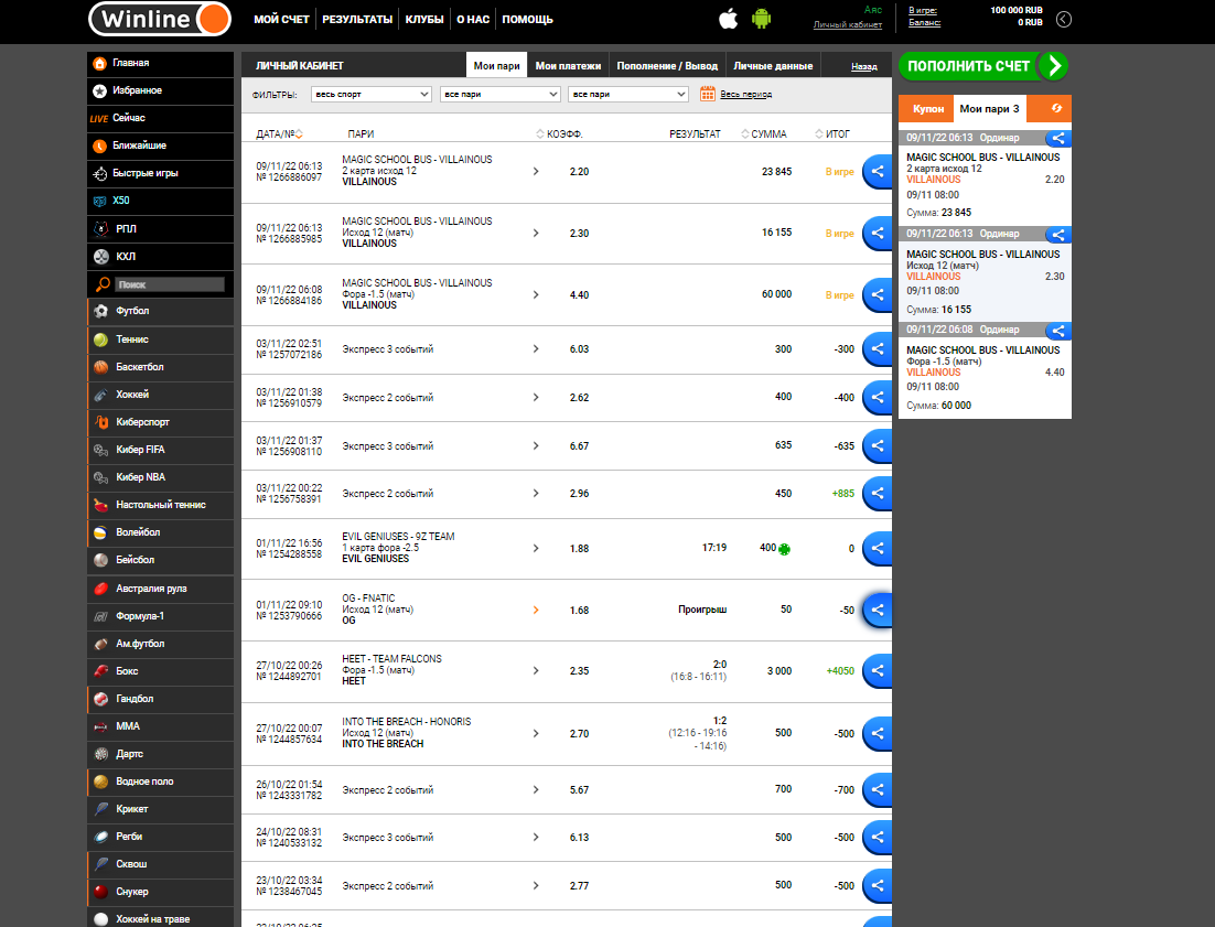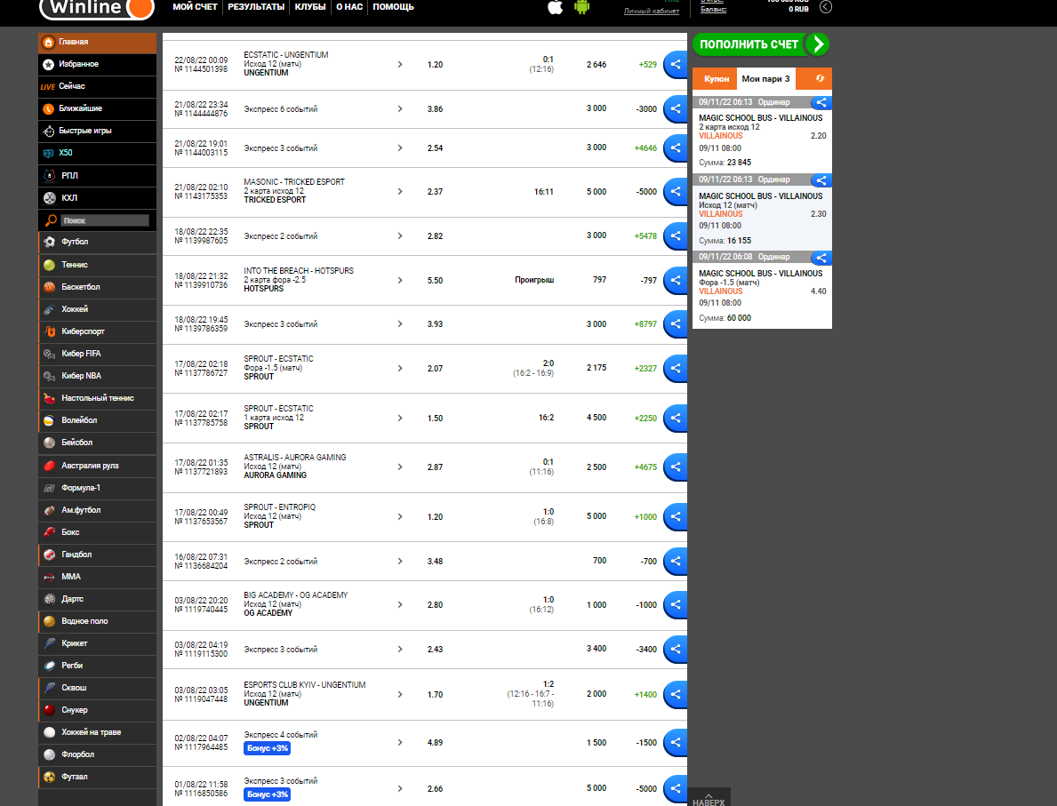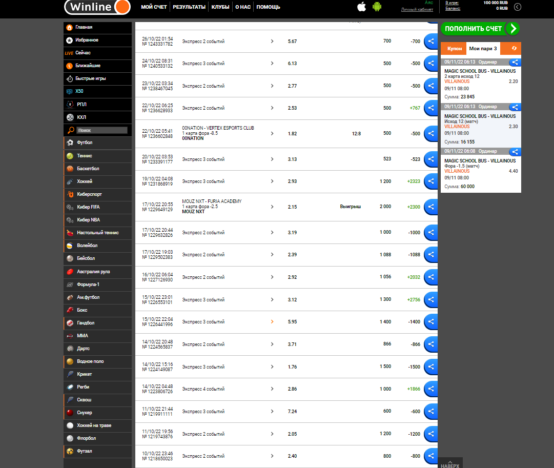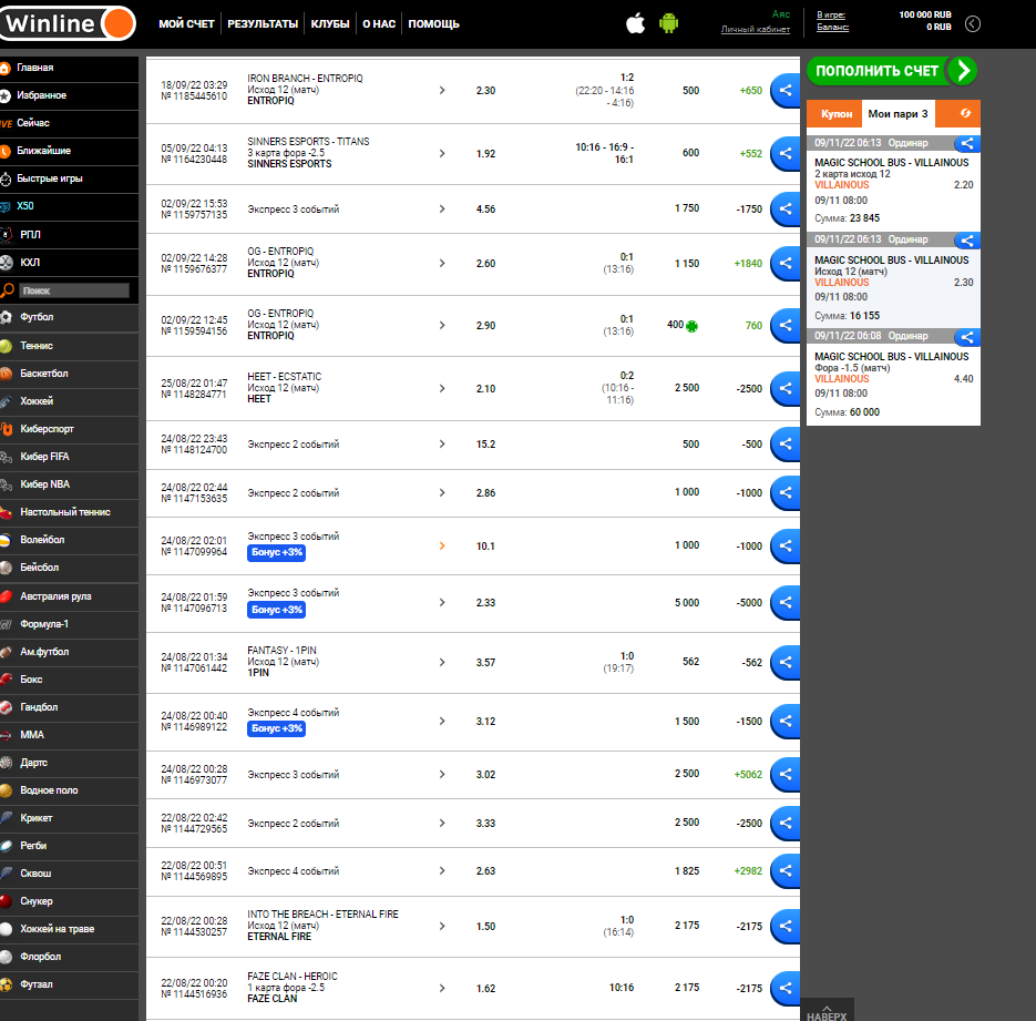 09/11/22 06:08 поставил ставку в сумме на 100000 рублей на американскую лигу ( ESL Challenger League Season 43: North America ) это самый высокий дивизион в дисциплине cs:go выигрыш составлял 353 615 (игру уже рассчитали и дали возможность вывести) я поставил на вывод полную сумму и через какое то время средства вернулись обратно на баланс (353 615 рублей) а позже вовсе ставка вернули в активную и аннулировали баланс (0 рублей) аккаунт старый, ставил на данном аккаунте чуть ли не каждый день, но именно тогда когда я вышел в + бк решили отменить и заморозить аккаунт ниже скриншоты самого выигрыша (вывод) скриншот возврата ставки (возврат) скриншоты того что аккаунт не новый и на этом аккаунте каждый день ставки на киберспорт видно по скриншотам что я бк не «грабил» (1,2,3,4,5,6 добавил один скриншот так как у вас можно максимум 3 скриншота в жалобе ps в остальных скриншотах ставки вплоть до дня заморозки ставки те до 9 ноября 2022 года) БК winline не отвечает, в день когда я выиграл данную сумму тех поддержка твердила что нужно ждать 90 для расчета ставки (хотя игру рассчитали на всех бк и на официальном сайте игра была завершена еще 9 ноября 2022 года () далее в течении трех дней техподдержка поменяли эти 90 дней на 365 дней вы надеюсь сами понимаете что это полный бред ждать целый год когда результаты игры были еще в тот же день ниже скриншоты бк fonbet (1,2,3,4 не могу добавить скриншот тк максимальное количество превышено) оборот fonbet (оборот) не могу добавить скриншот тк максимальное количество превышено) как вы можете видеть я ставлю на киберспорт каждый день ( есть удачные и не удачные дни) по данным скриншотам вы можете понять что я не просто человек который решил поставить на один случайный матч а тот кто ставит каждый день на бк и по скриншотам winline вы так же могли видеть что я ставил каждый день в плоть до 9 ноября 2022 года пока бк не ограничила для меня ставки сам же я играю в данную киберспортивную дисциплину с 2015 года и у самого есть своего рода достижения в игре, за киберспортом слежу пристально так как данная игра это то чем я занимаюсь уже последние лет 7 сам играю на семи про уровне Если вам надо чтобы я как то объяснил почему и как я поставил именно на эту игру я готов в режиме лайв объяснить все свои действия Пожалуйста помогите решить данную проблему так как вы прекрасно понимаете что бк winline задержали такую сумму уже на протяжении почти двух месяцев (мой депозит на данную ставку был 100000 рублей) бк winline просто забрали мои 100000 рублей и не отдают выигрыш в размере 353615 рублей надеюсь на вас и жду ответа (ниже скриншот что ставка просто висит в нерассчитанных) (ставка) не могу добавить скриншот тк максимальное количество превышено ps дата возникновения проблемы стоит 21 12 2022 потому что это крайний возможный срок который я могу почему то поставить