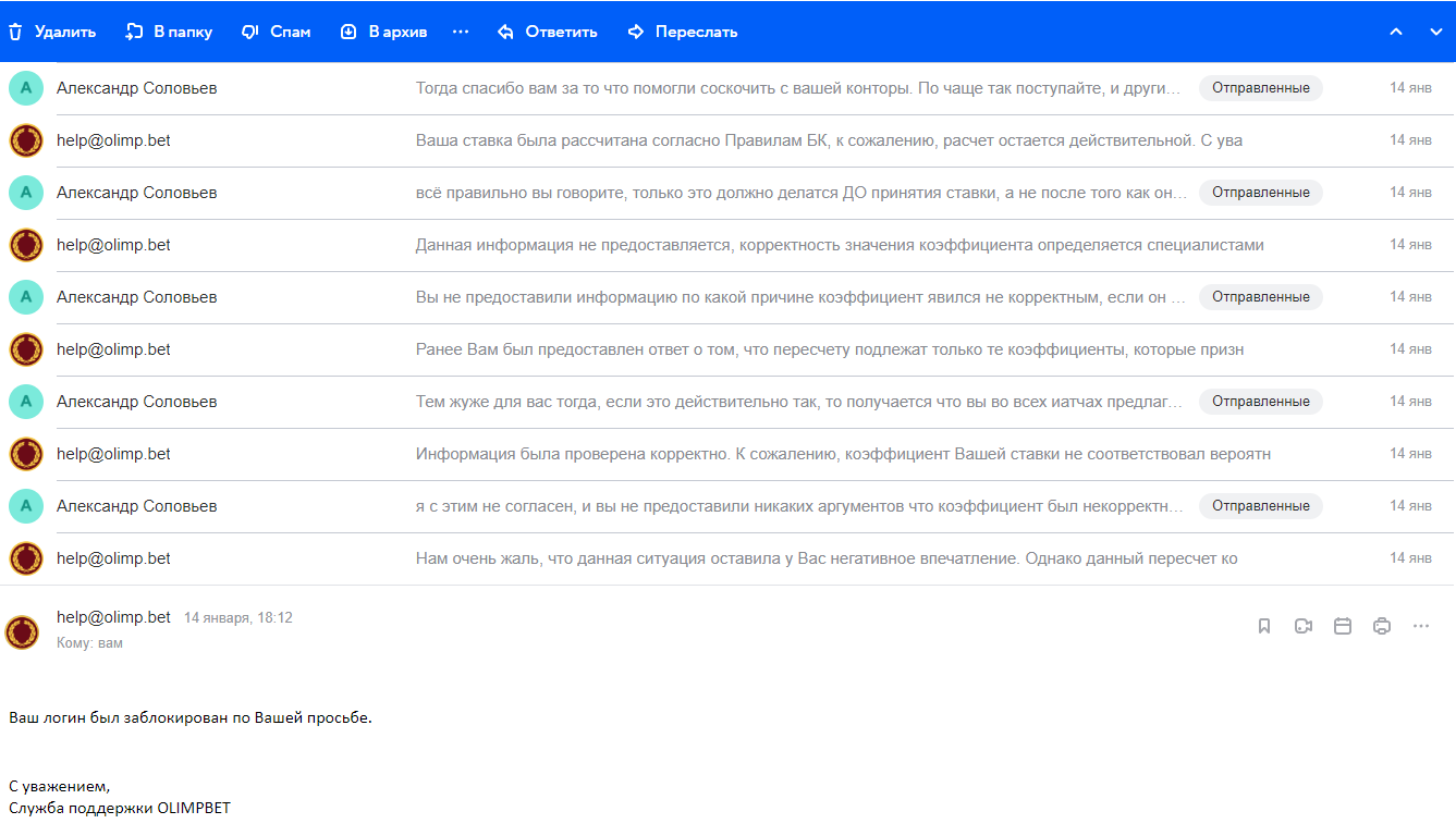 Мне хватило одного раза чтобы больше никогда не к ним ну суватся, удалил уже аккаунт через поддержку, без возможности восстановления и другим буду советовать чтоб так сделали, дурят даже тех, кто их кормит, залил туда 200к небольшими суммами, и всё время проигрывал, ни разу не выводил деньги, а как зашла 1 раз ставка 10к за кэф так они её пересчитали за ))) больше половины выигрыша сразу списали, выигрыш я выводить не собирался, поддержке говорю чё вы дурите там, подождите пару дней, я и так вам их солью, вы же видите мои ставки, все на высокие кэфы, когда зайдёт какая нибудь одна, то уже слито гораздо больше чем прибыли с этой одной, ну а тут ещё если без игры они будут забирать 60% от выигрыша, то тогда туда нужно будет заливать в два раза больше. Ставка была №119 на НХЛ Филадельфия-Вашингтон на 50 минуте при счёте 4:1 фора2 +2.5 Матч закончился 5:3 Команды играли в равных составах, удалений не было. Такой кэф всегда у них, посмотрите сами если кто сомневается, любой матч НХЛ возьмите с разницей 3 гола за 10 минут до окончания, там уже без разницы будет, фаворит, аутсайдер, чтоб ставка зашла нужно выигрывать оставшуюся часть матча, а играть ещё и с пустыми воротами придётся, в НХЛ всегда вратаря снимают.
