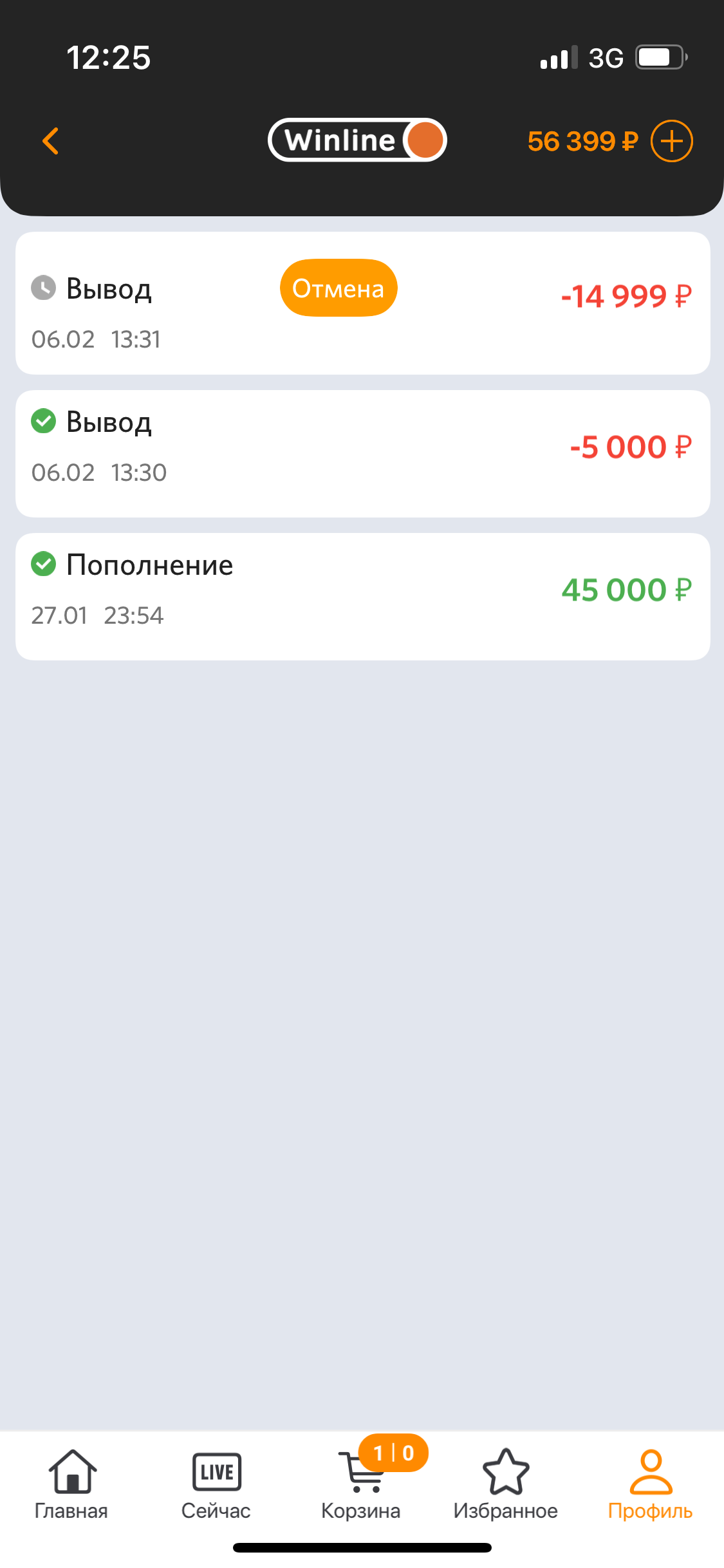совершил первый депозит и ставку в Winline. Все шло хорошо до того момента, пока я не попытался вывести средства. Вначале они запросили всевозможные документы, фотографии и т.д.. Все предоставил, пока ожидал верификации совершил еще одну ставку, которую мне вернули ссылаясь на корректность в линии. Верификация была пройдена успешно . Единственное, мне ограничили вывод только на ЦУПИС, при выводе на ЦУПИС мне выдаёт техническую ошибку, с просьбой попробовать позже или обратиться в поддержку. В поддержке говорят, что да, есть ошибка, но конкретных сроков по ее решению их нет. Также мне установили лимит на любую ставку 100р. На аккаунте зависли 75000 рублей. 5000 кое-как удалось поставить на вывод, но они на рассмотрении уже какой день. Написал жалобу в РСО, ожидаю ответа. Думаю пойти судиться, потому что, по всей видимости, деньги они мне отдавать просто не хотят, ссылаясь якобы на какие-то технические ошибки, которые расшифровать и объяснить в чем причина не могут.