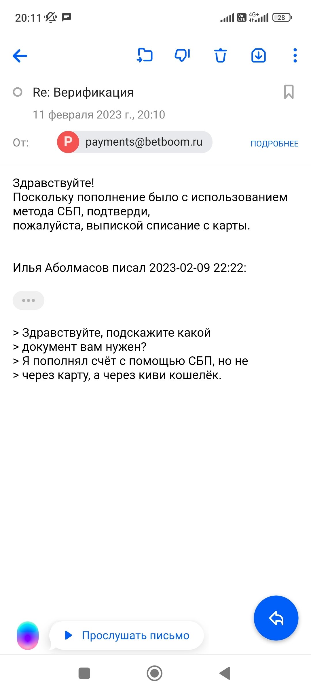 Здравствуйте, сфотографировал паспорт с телефоном, в котором открыт личный кабинет и видна дата сверху, но букмекера опять не устраивает и я не понимаю какое ещё время и дата их интересует! Стационарного компьютер у меня нет! На телефоне специально установил приложение, чтобы дата и время отображались наверху в строке состояния. Скриншот из личного кабинета киви их тоже не устраивает и просят выписку с карты, но я не пополнял с карты! Я пополнял через систему быстрых платежей, там выбирал кошелёк киви. И опять же договор с сотовым оператором, печать видна и другого документа мне не дают в салоне! Помогите мне пожалуйста.