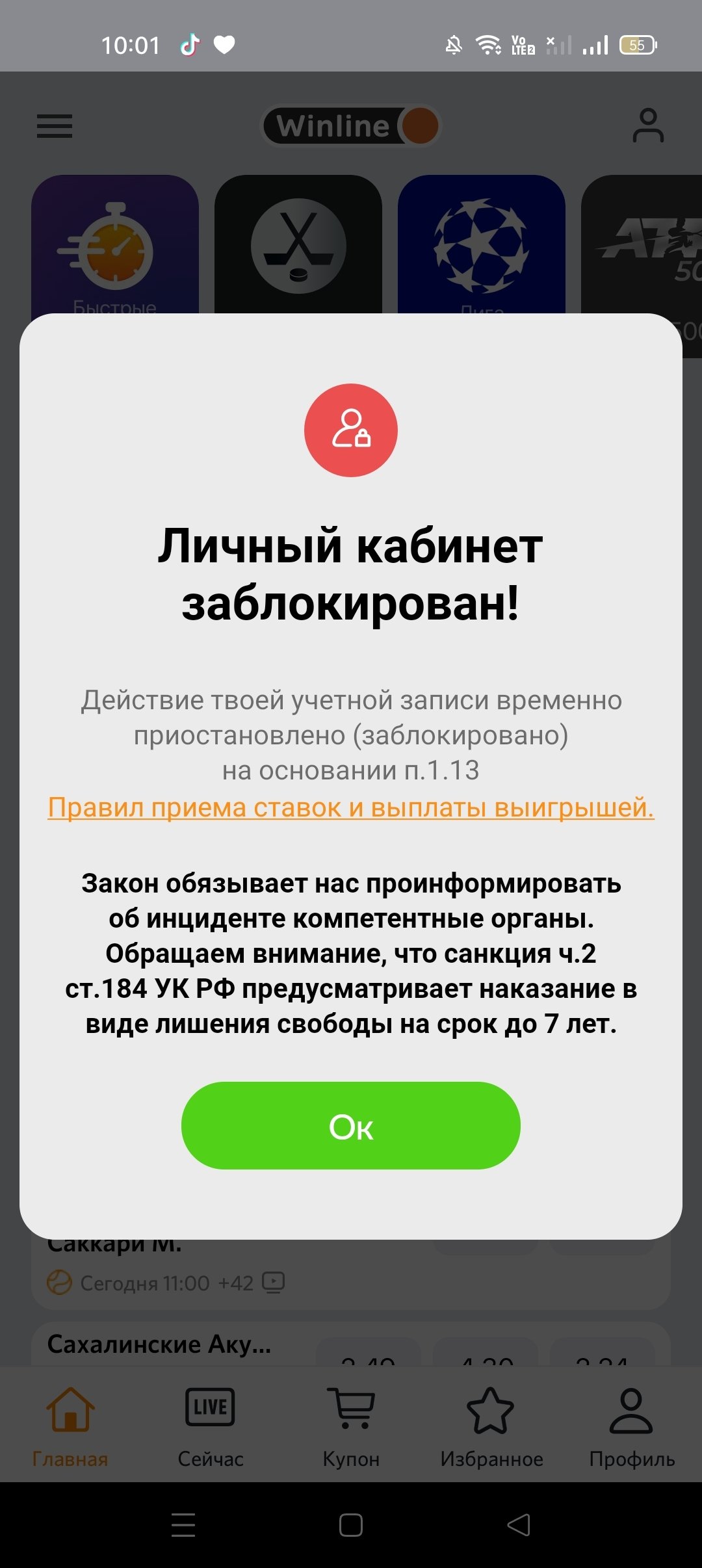 Здравствуйте сегодня меня заблокировали можно как то разобраться ? Я не совершала никаких ставок или других действий