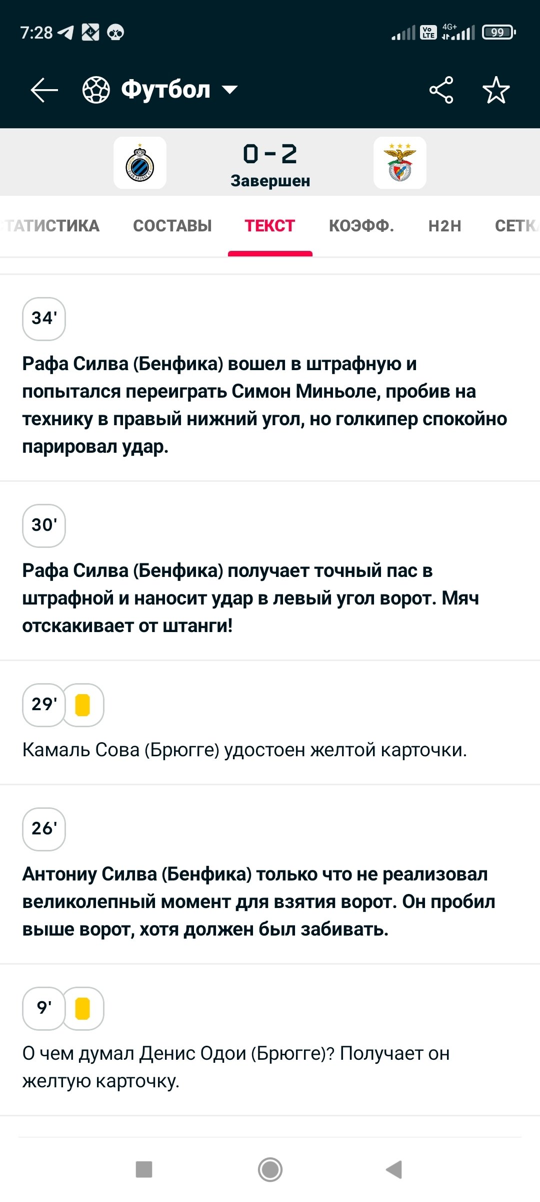В матче Брюгге Бенфика в первом тайме на 30 минуте Рафа Силва пробил в штангу а в пари проставили что не было попадания в штангу