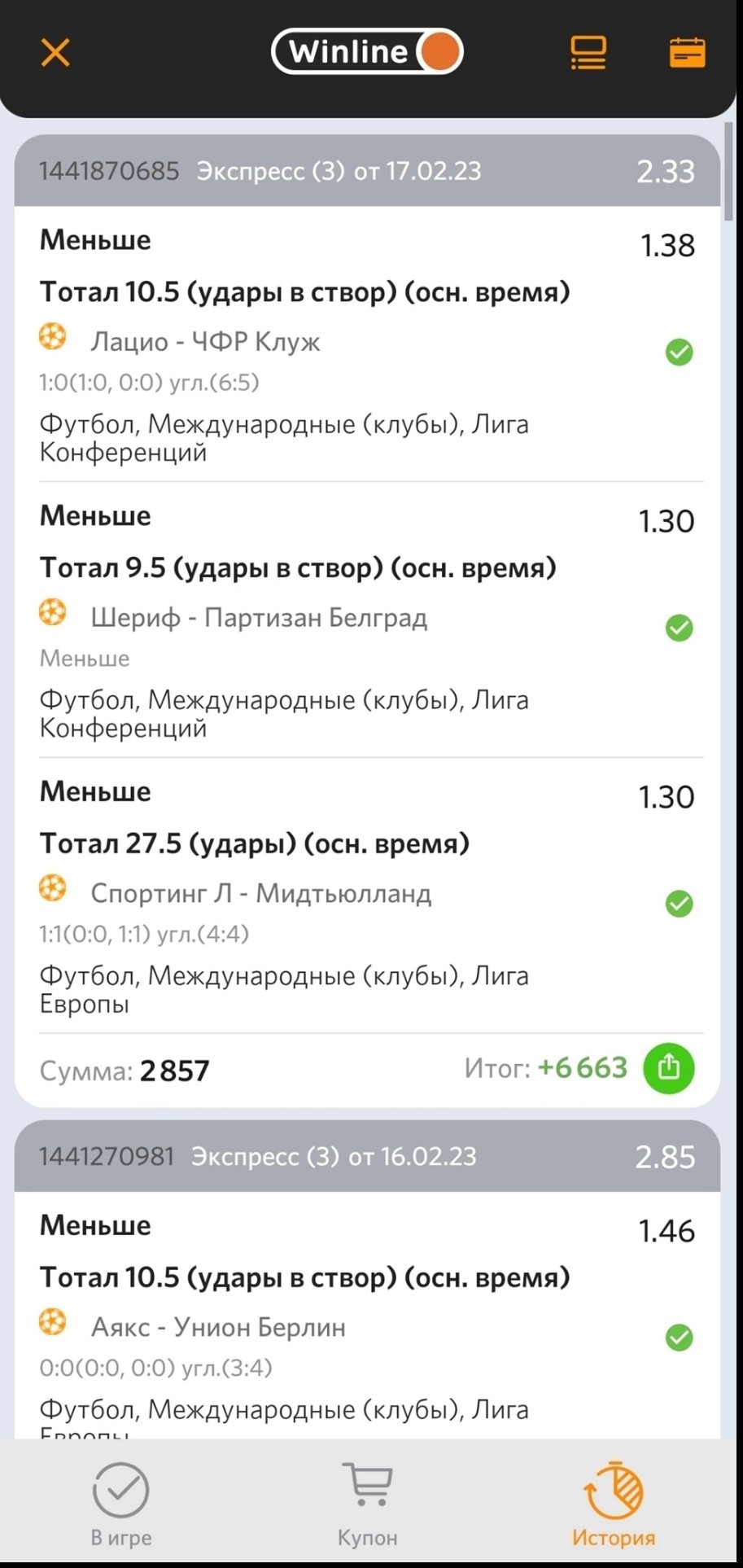 А вот тут они рассчитали правильно,тоже Winline,тоже удары в створ 9.5