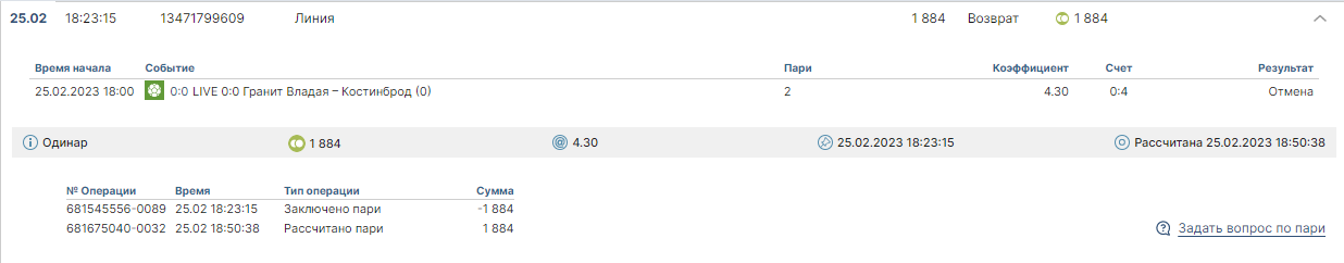 Здравствуйте, надеюсь вы сможете мне помочь, очень надеюсь на вас февраля я делал ставки на сайте фонбет, заключил несколько пари на матч 3 лиги болгарии Гранит Владая – Костинброд, ставил на нулевую фору второй команды. Пока я делал ставки при счёте 0-0, всё было впорядке, но как только моя команда забила, по всем моим ставкам сделали возврат. Почему то на другие матчи, в которых я проиграл деньги, мне никакие возвраты не сделали, а на выигрышные ставки сразу же отмена пари. Я очень злюсь из-за этой ситуации и хочу что бы об этом узнали все и очень надеюсь на то, что вы сможете мне помочь решить данную проблему и вернуть мне веру в то, что Фонбет норм букмекер!