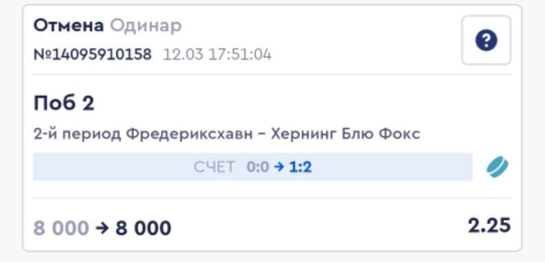 По информации от букмекера, ставка рассчитана возвратом по причине того, что она сделана по некорректной линии при уже изменившемся счете. Возврат в рамках правил.
