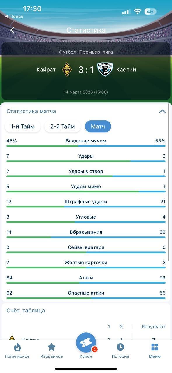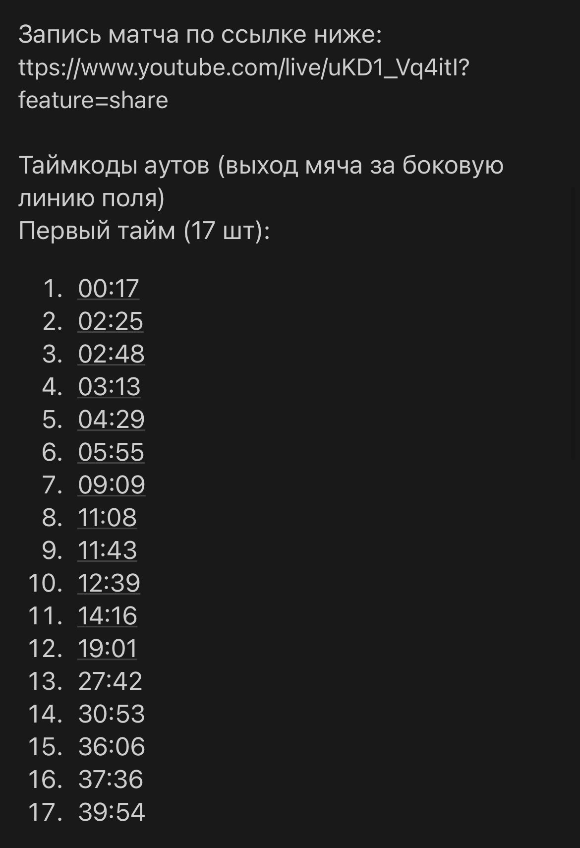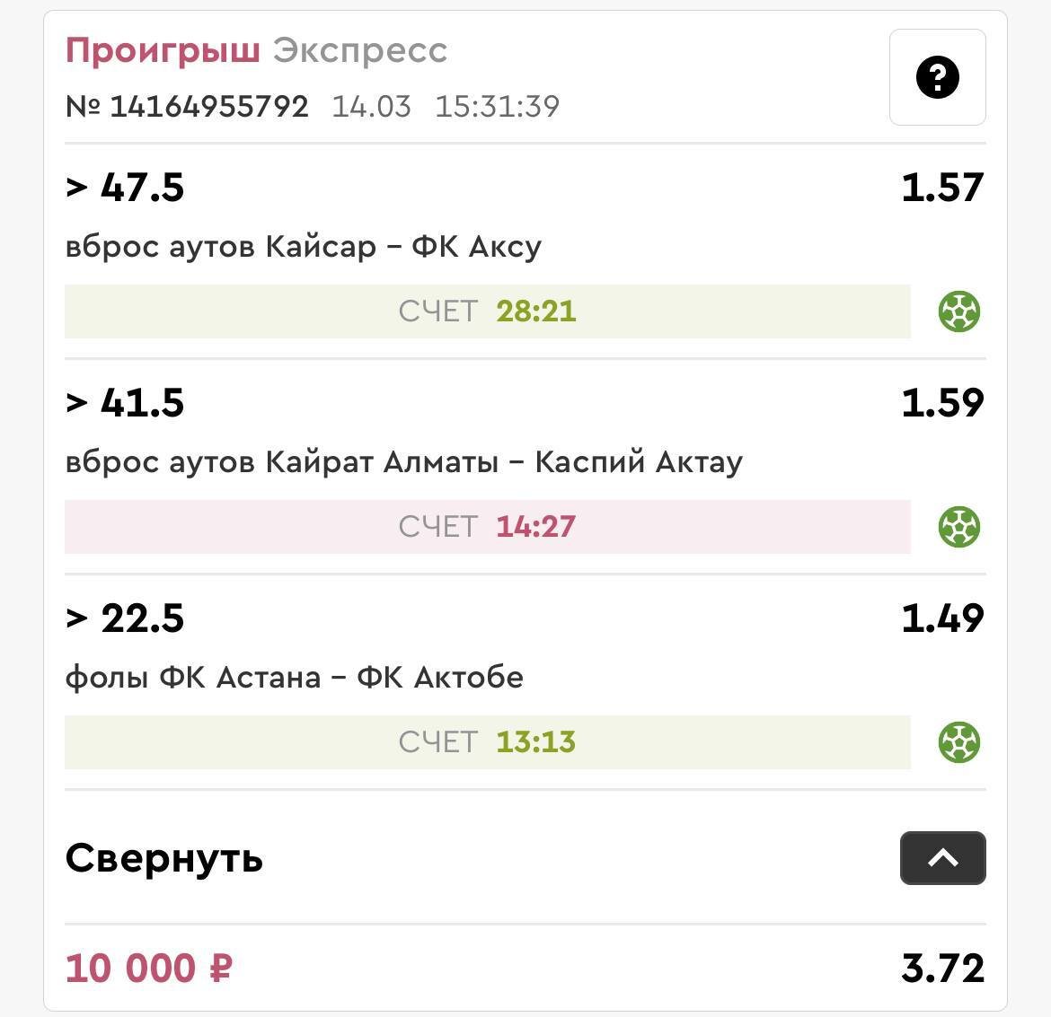 я поставил на экспресс (№ 14164955792) из 3-х событий Вброс аутов Кайсар-ФК Аксу больше 47,5 — прошелФолы ФК Астана — ФК Актобе больше 22,5 — прошелВброс Аутов Кайрат Алматы- Каспий Актау больше 41,5 Итак по расчету букмекеру последнее событие не прошло, хотя 3 источника говорят о том что событие прошло и вбросов аута было 50 Также я нашел трансляцию и лично посчитал все ауты, выписал таймкоды, и сделал нарезку видео с этими эпизодами, так как сотрудник PARI в чате телеграмм написал мне, что я могу предоставить им трансляцию. По моим расчетам получилось 48 аутов, что подтверждает мой выигрыш. Я оформил письмо в саппорт PARI как мне сказали в телеграмм канали. И получил ответ — что они работают только со своим источником Я потратил свое время, чтоб получить стандартный ответ, который еще и противоречит словам сотрудника, который писал мне в телеграмм канале. как они могут опираться только на одного источника, который в данной ситуации дает категорически неверные данные.