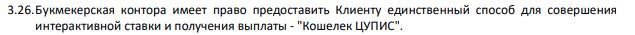 ООО "Фортуна" (она же Компания "Бетсити") нарушила правила приема ставок и выплат выигрышей. Мне предоставлен только единственный способ получения выплаты - банковский перевод. Регистрировавшись в ООО "Фортуна", я принял правила приема ставок и выплат выигрышей. По п.п. единственным способом для совершения интерактивной ставки и получения выплаты может быть только "Кошелек ЦУПИС". По какой причине нарушены мои права, и по какой причине не соблюдаются правила приема ставок и выплат выигрышей?