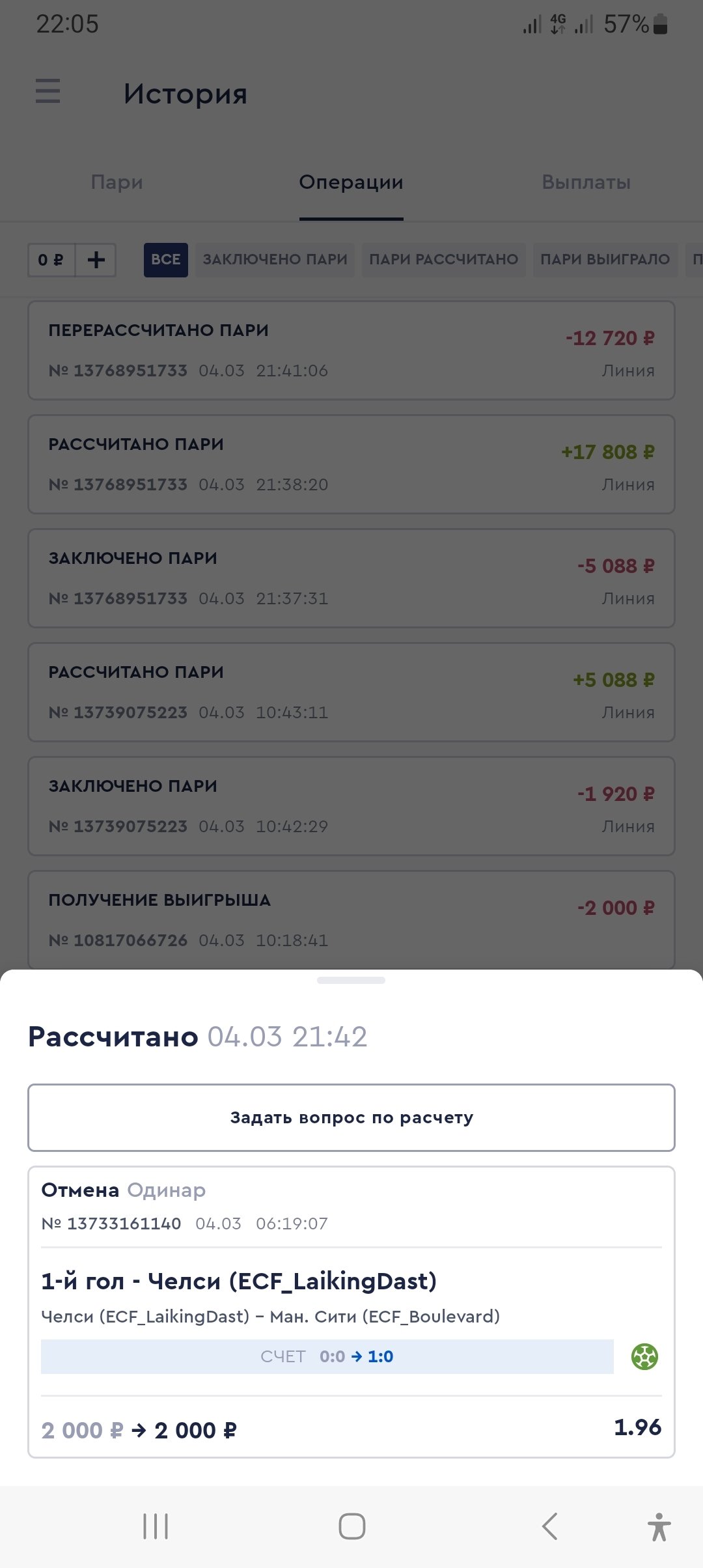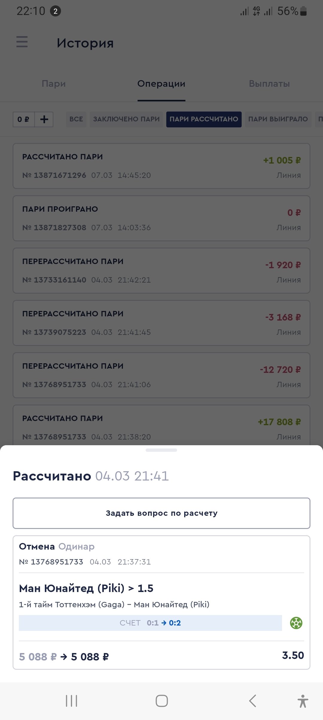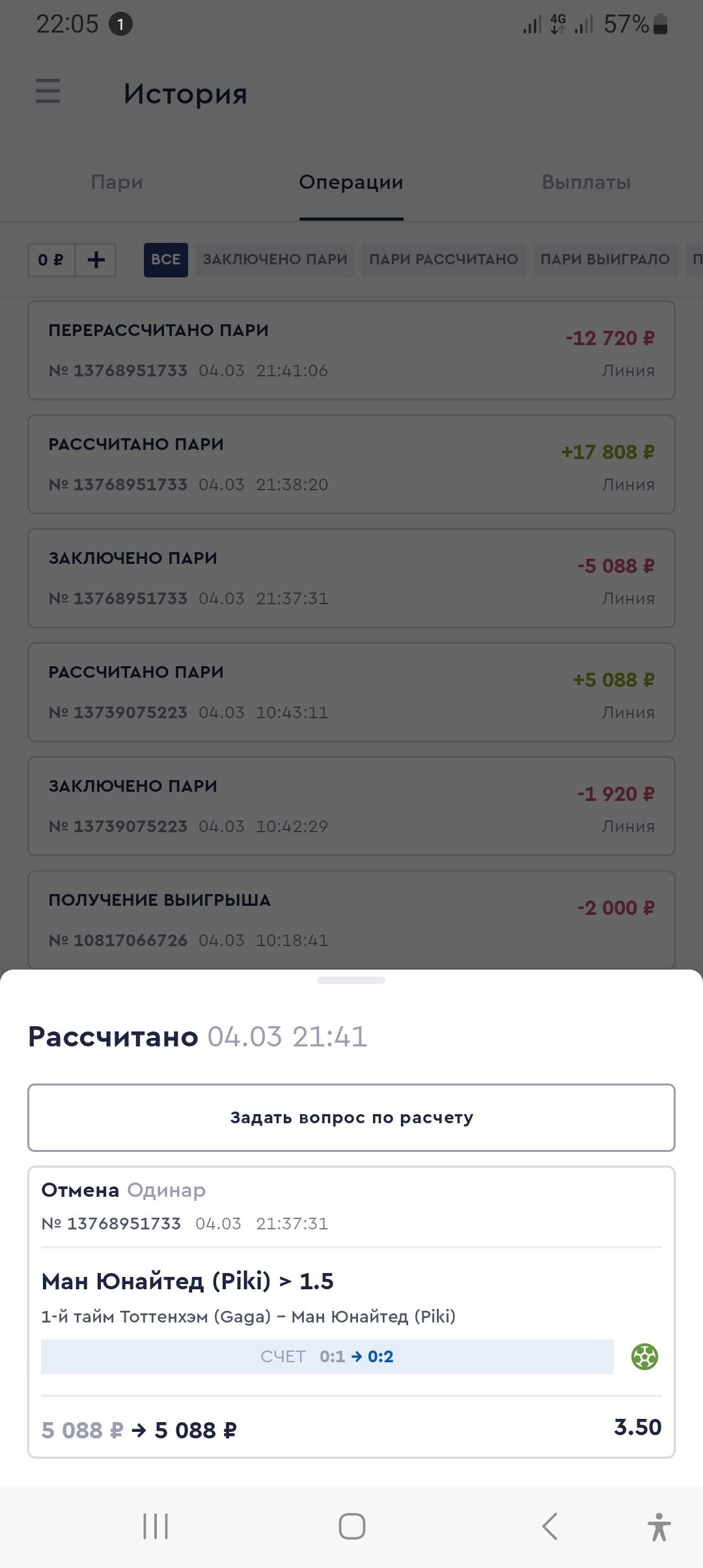 По информации от букмекера, ставки аннулированы по причине того, что сделаны на свершившиеся события. Возврат в рамках правил.